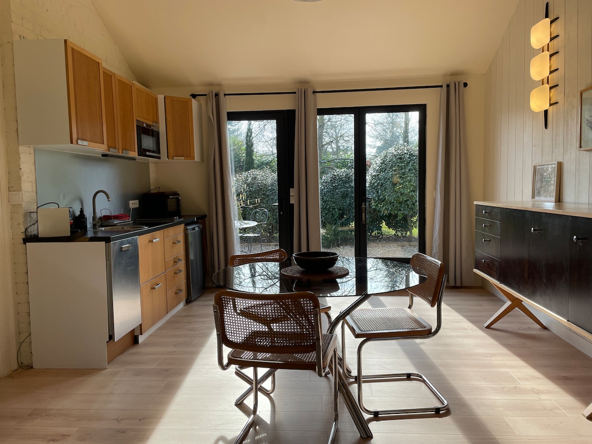 La Lanterne to jasny i pełen światła domek typu loft (50 m2) położony w Normandii, na pięknym terenie dużego domu nad brzegiem Sekwany w Tournedos-sur-Seine (spokojna wioska cztery km od Le Vaudreuil/Val-de-Reuil). Dom został dobrze umeblowany i jest w pełni wyposażony. Dwa duże pokoje z otwartą kuchnią, sypialnia z podwójnym łóżkiem typu king size, sofa, biurko. Prywatna łazienka z kabiną prysznicową. Luksusowy wystrój. Spokojne i magiczne otoczenie blisko natury.