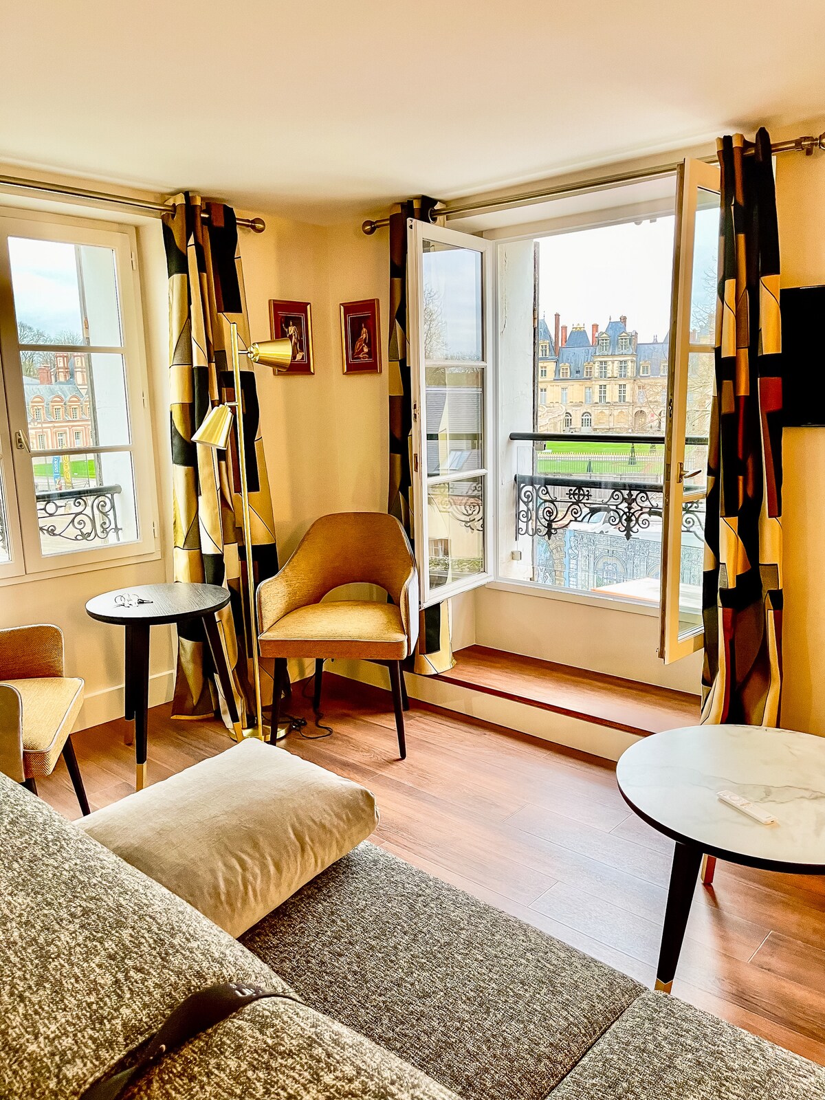 Uroczy apartament z pięknymi widokami na zamek Fontainebleau. Znajduje się w nim sypialnia z podwójnym łóżkiem, wygodna sofa i jest w pełni wyposażona, aby zapewnić przyjemny pobyt. Zapewniamy pościel i ręczniki, a także szybki internet przez Wi-Fi. Dogodna lokalizacja, w odległości spaceru od lokalnych atrakcji. Idealne miejsce na pobyt z rodziną lub przyjaciółmi, łącząc wygodę i wygodę w wyjątkowym otoczeniu.