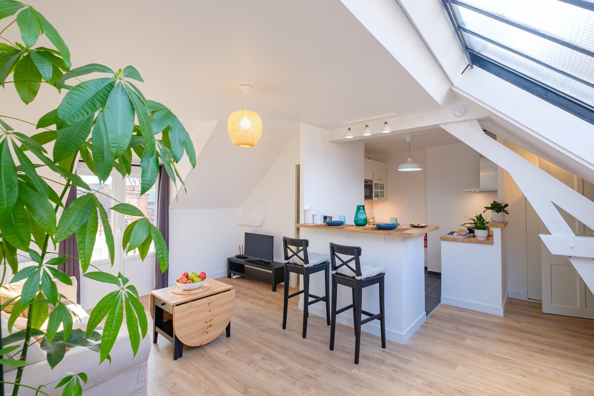 Witamy na dachach Fontainebleau! Jasne mieszkanie o powierzchni 65 m² (powierzchnia użytkowa) jest w pełni wyposażone (kuchnia, telewizor, pralka z suszarką) i posiada 3 podwójne łóżka. Mieszkanie znajduje się w centrum Fontainebleau, w bardzo tętniącej życiem dzielnicy, w bezpośrednim sąsiedztwie restauracji, barów, sklepów i ogrodów zamku (< 2 minuty pieszo). Uwaga: dzielnica jest bardzo tętniąca życiem późnym wieczorem od środy do soboty wieczorem.