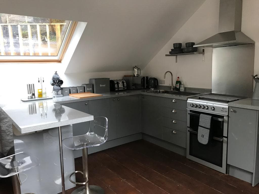 Stodoła jest bardzo stara, ale przekształciliśmy ją w apartament z 2 łóżkami (jedno podwójne łóżko i jedno duże okrągłe łóżko na antresoli) z „łazienką w szopie” i dużym salonem. Znajduje się na szczycie części naszego własnego domu (nad kuchnią), ale ma oddzielne prywatne wejście i drzwi do ogrodu. Nie ma kuchni – pomyśl o pokojach hotelowych, a nie o wyżywieniu! Znajduje się w samym sercu wioski, kilkaset metrów od dobrych restauracji, starych pubów i niezależnych sklepów.