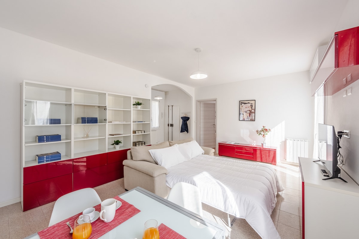 Rilassati in questo delizioso appartamento in posizione centrale,nel cuore di Modena nella zona elegante Pomposa,a 4 minuti a piedi dal duomo e a 10 minuti dalla stazione dei treni ,situato al primo piano con ascensore,con posteggio interno custodito per le bici, cucina , 1 bagno e mezzo ,1 letto matrimoniale, 1 letto singolo, 1 divano letto, tv, wi-fi, riscaldamento e aria condizionata,tassa soggiorno 1 € a persona per ogni giorno, situato vicino a vari ristoranti