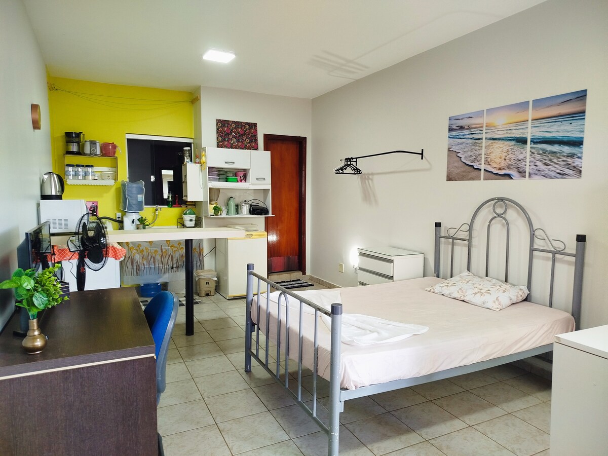 Apto203 Komfort i lokalizacja w Formosa-GO Aconchegante, funkcjonalne i bardzo dobrze położone! Nasze apê znajduje się 500 m od UNIRV, IESGO, szpitala regionalnego, SAMU, Forum, OAB, supermarketów Day by Day i Atacadão, a także Restaurante Mediterranium Gastronomia International Idealne do pracy, nauki lub odpoczynku, apartament jest kompletny i nowo urządzony. 2 sypialnie (1 klimatyzowany apartament), 2 łazienki, salon z rozkładaną sofą i telewizorem, wyposażona kuchnia i szybkie Wi-Fi. Przeznaczone dla maksymalnie 4 osób.