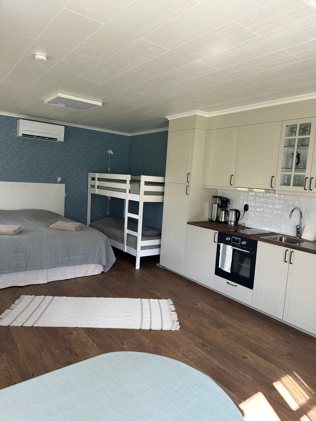 Ciesz się tym nowo wybudowanym eleganckim miejscem z ogrzewaniem podłogowym na bazie wody. 30 m2 + loft. Piekarnik/kuchenka mikrofalowa. Smart TV Z prywatnym patio w położeniu południowym i grillem (węgiel i płyn do zapalania nie są wliczone w cenę). Znajduje się na terenie naszej nieruchomości. Blisko (pieszo) do miłej przyrody, ścieżek spacerowych i pięknych plaż (patrz zdjęcia). Uwaga: pościel nie jest wliczona w cenę, ale może być dostarczona w cenie 150 sek/pobyt (prześcieradła na 160 łóżek/2 poszewki na poduszki/2 poszewki na kołdry). Dostarczone są ręczniki. Skrzynka ładująca do ładowania samochodu elektrycznego jest dostępna za opłatą.