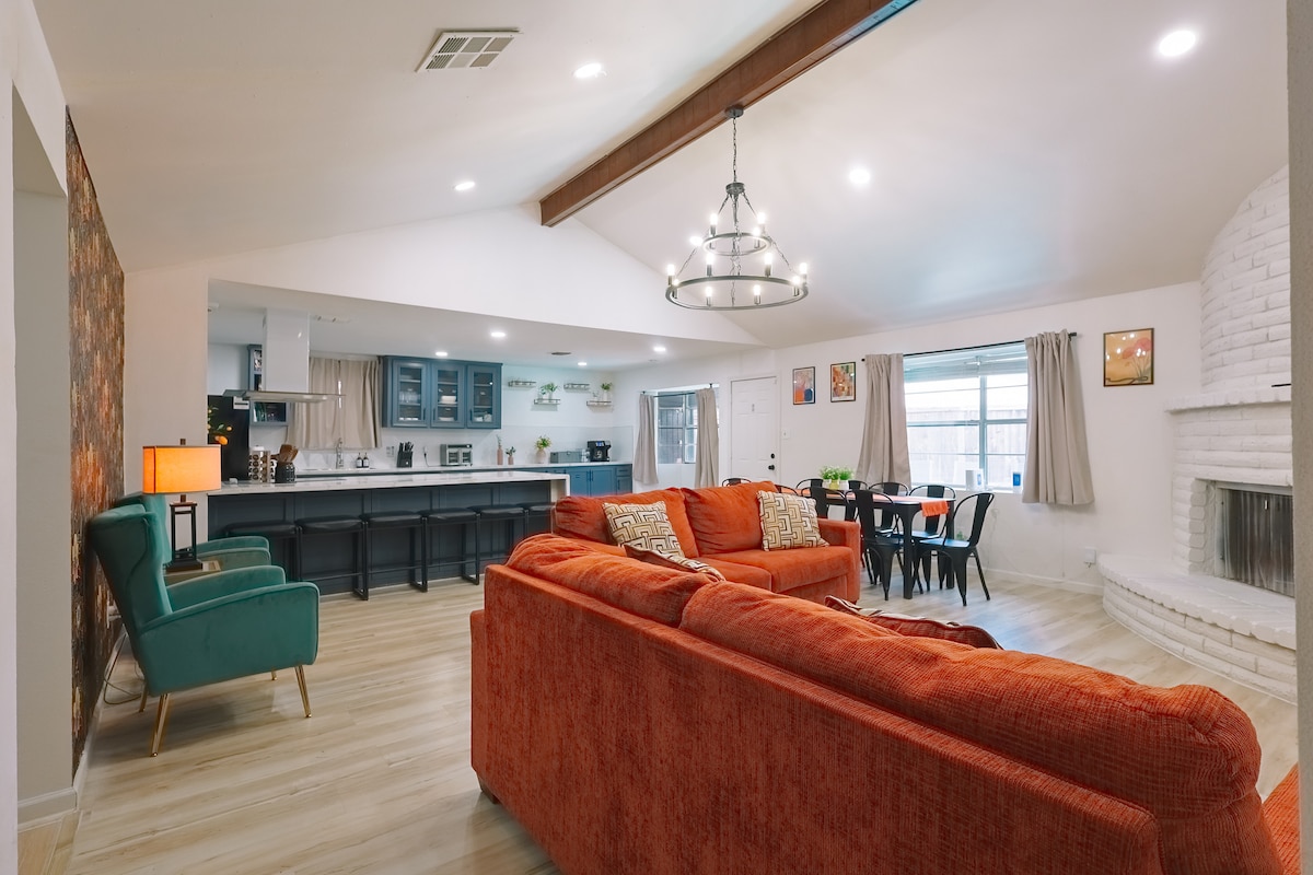 Zatrzymaj się zaledwie kilka minut od stadionu NRG! Ten dom znajduje się zaledwie 15 minut od stadionu, co czyni go idealnym miejscem na pobyt podczas Mistrzostw Świata w Piłce Nożnej 2026. Ten przytulny dom, zaledwie 15 minut od stadionu NGR i Rodeo, wygodnie pomieści 14 gości, idealny na spotkania rodzinne lub wypady znajomych. Zrelaksujesz się w kojącym jacuzzi pod gwiazdami, zbierzesz się wokół trzaskającego ogniska na przytulne wieczory i rozpoczniesz spokojny, przestronny wieczór. Wewnątrz odkryjesz