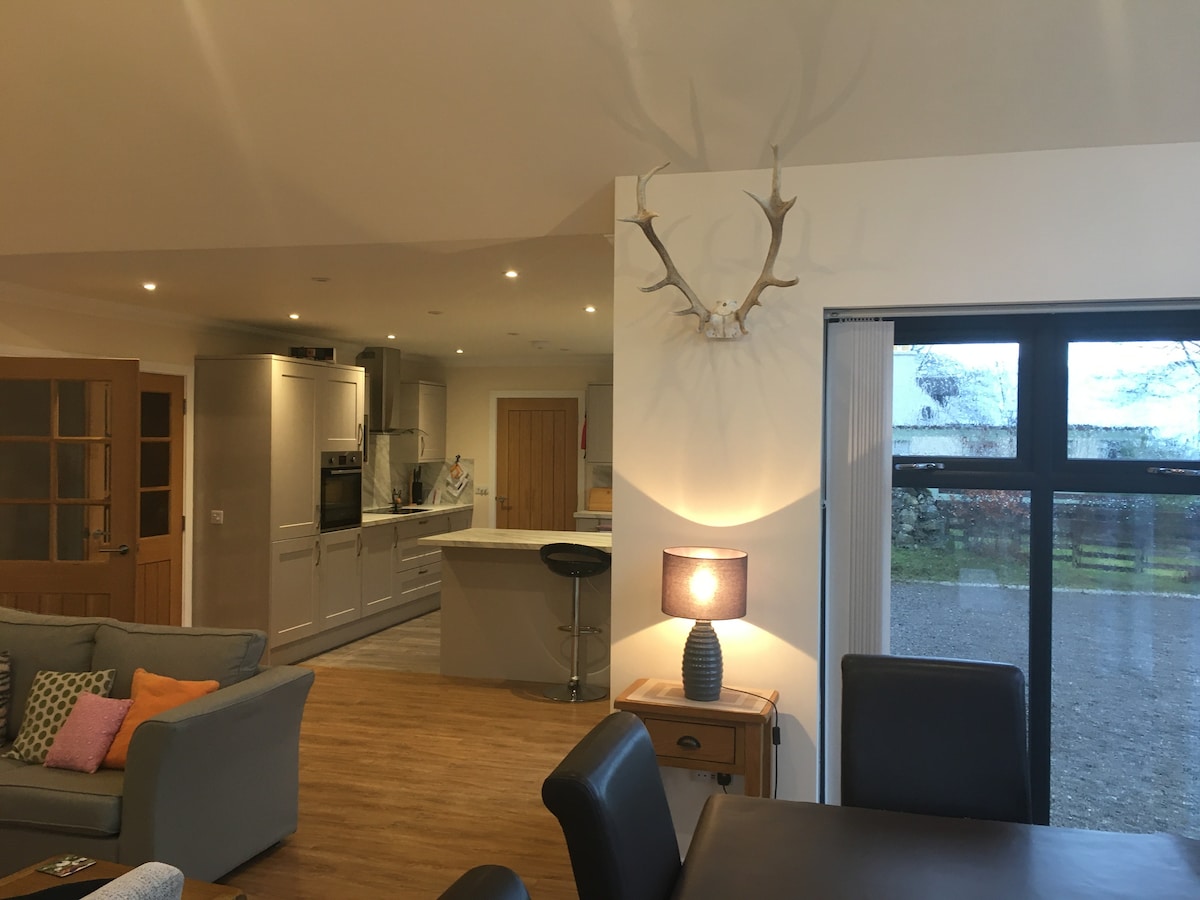Położony na wsi, ale nie odizolowany, zaledwie 11 mil od Oban. Idealne, przytulne, górskie miejsce na relaks, regenerację i ponowne nawiązanie więzi. Z ogrodu na górze roztacza się wspaniały widok na góry. Idealne miejsce dla pary lub rodziny ze względu na otwartą przestrzeń. W pełni wyposażona kuchnia, superszybki internet szerokopasmowy i rolety zaciemniające w obu sypialniach. Nie dodano opłaty za sprzątanie. Samochód niezbędny. Bezpłatny parking przy drzwiach. Maksymalnie 4 osoby. Tylko bez dodatkowych osób. Sypialnia z podwójnym łóżkiem + 2. łóżko typu king size na otwartej antresoli.