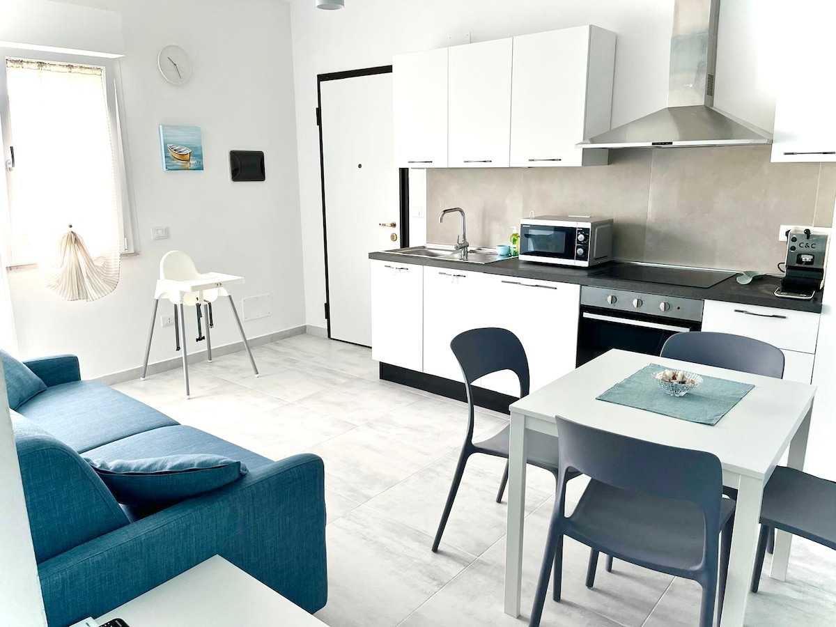 Fossacesia beachfront apartment, central area, at front of the bike path. Całkowicie odnowiony w pierwszych miesiącach 2025 roku, cieszy się dużym tarasem(z namiotem elektrycznym)z widokiem na morze i prysznicem na świeżym powietrzu: idealny na wschody słońca nad morzem i ciesz się chłodną letnią bryzą już od czasu lunchu, biorąc pod uwagę wschodnią ekspozycję. Salon z podwójną sofą, łazienka z prysznicem, sypialnia z podwójnym łóżkiem. Pralka, zmywarka, kuchenka mikrofalowa, klimatyzacja
