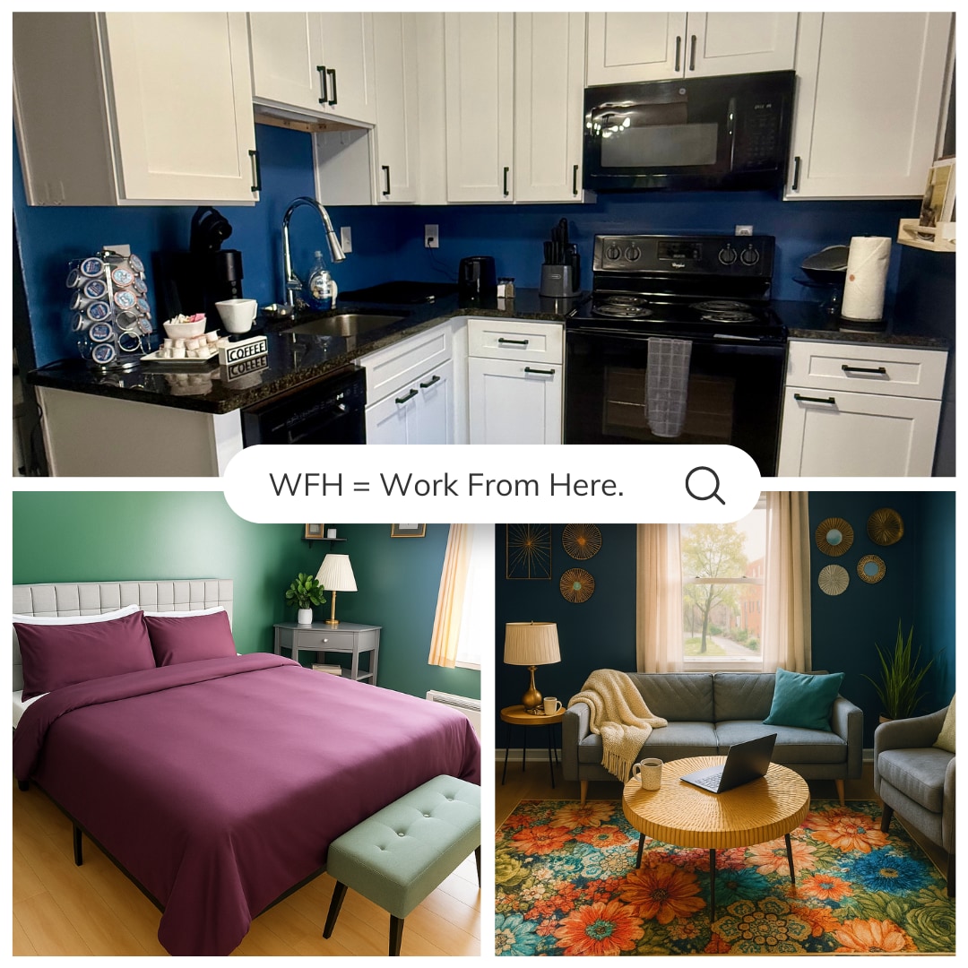 Czekamy na Twój przyjazd do prywatnego apartamentu, który jest to kwatera gościnna w naszym domu. Będziesz mieć prywatne wejście i 3 pokoje dla siebie. Jest salon ze stołem i krzesłami, sypialnia z łóżkiem typu queen-size – szafki nocne, komoda i szafa z wieszakami do użytku – oraz nowo wyremontowana pełna łazienka. Na korytarzu znajduje się również aneks kuchenny, który jest zabytkową szafką Hoosier wyposażoną w kuchenkę mikrofalową, mini-lodówkę, dzbanek do kawy i dzbanek do gorącej wody.
