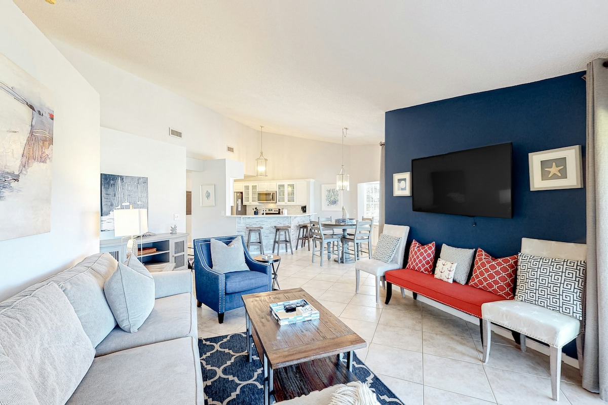 ✔️ Designer 1BR at Luau with Gulf & lagoon views ✔️ Lagoon-style resort pool, hot tub & poolside bar ✔️ Modern, chic interiors • Sleeps up to 4 ✔️ Superhost • Self check-in • Flexible cancellation Your Stylish Resort Getaway: Renovated 1-bedroom retreat ideal for couples or small families seeking comfort, design, and resort amenities. Enjoy water views, a true separate bedroom, and an easy 5-minute walk to the beach within Sandestin Resort near the Hilton — perfect for resort-style stays.