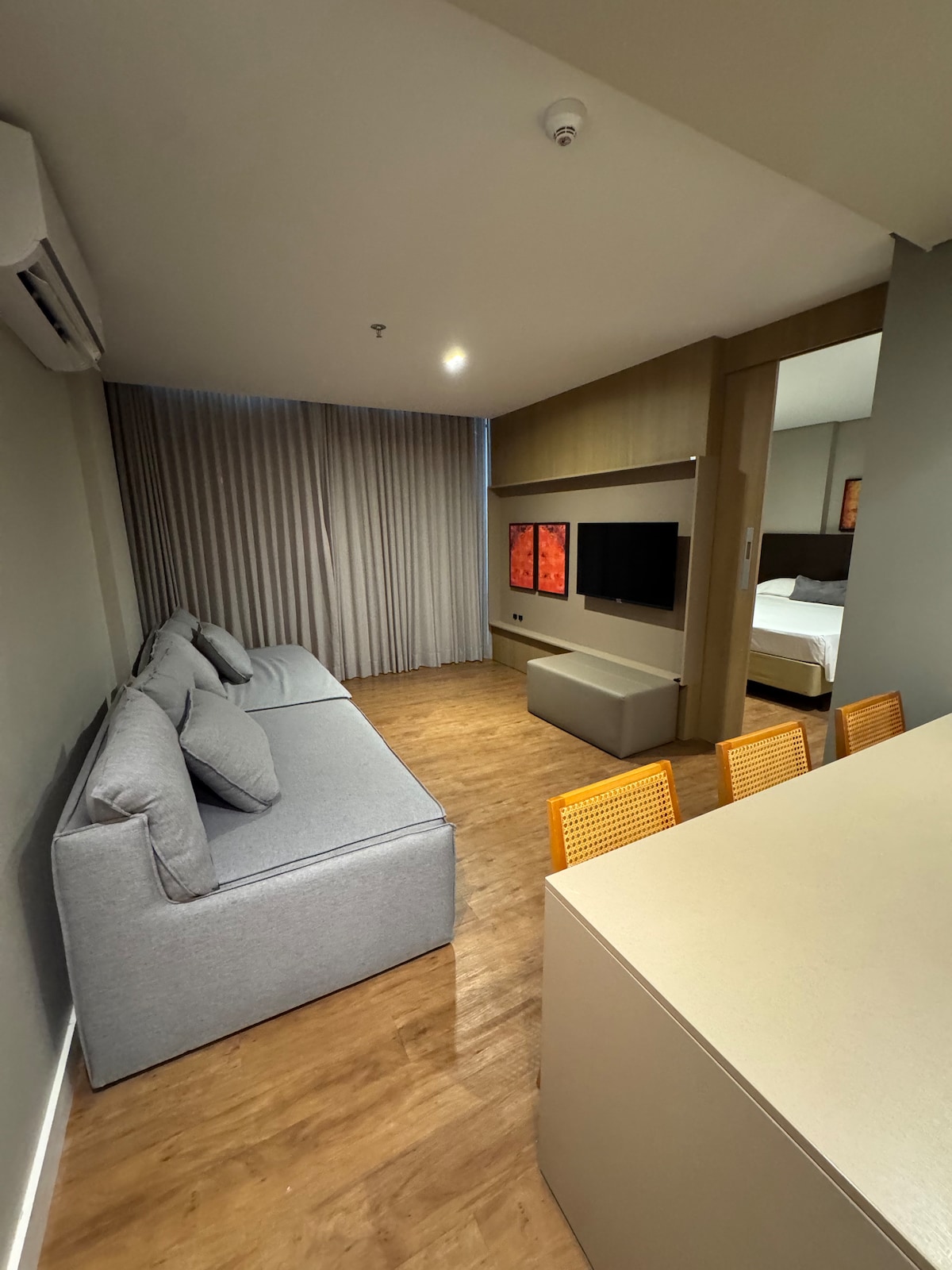 Apartament zawiera podwójne łóżko typu Queen. Jest Wi-Fi, klimatyzacja, telewizor Smart TV i sejf. W łazience znajdują się ręczniki, szampon, odżywka, mydło i suszarka do włosów. Kompleks znajduje się przy Avenida das Cataratas i oferuje udogodnienia dla Twojej wygody. W budynku znajduje się samoobsługowa pralnia, kantor, biuro podróży, wypożyczalnia samochodów, metro i całodobowy sklep spożywczy z bankomatem.