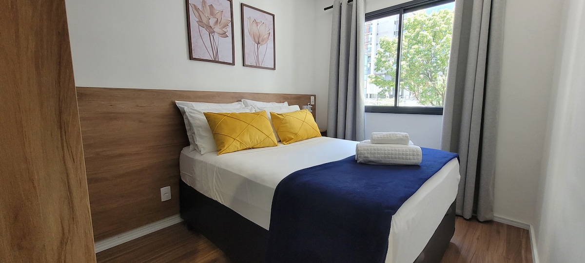 Uprzywilejowana lokalizacja, nowa , z doskonałą infrastrukturą, całodobowym konsjerżem, kamerami monitorującymi, windą. Siłownia i pralnia. Obok Av. Faria Lima i żółta linia metra. Obok barów i restauracji. Klimatyzacja ciepła i zimna, Wi-Fi, rolety zaciemniające, w pełni wyposażona kuchnia i ekspres do kawy Nespresso, opiekacz do kanapek, elektryczny wieszak na ręczniki. Samodzielne zameldowanie i 2 wygodne łóżka pojedyncze. Balkon. ⏰ Nowa godzina zameldowania/wymeldowania od 1 stycznia 2026 r. Zameldowanie o 15:00, wymeldowanie o 11:00.