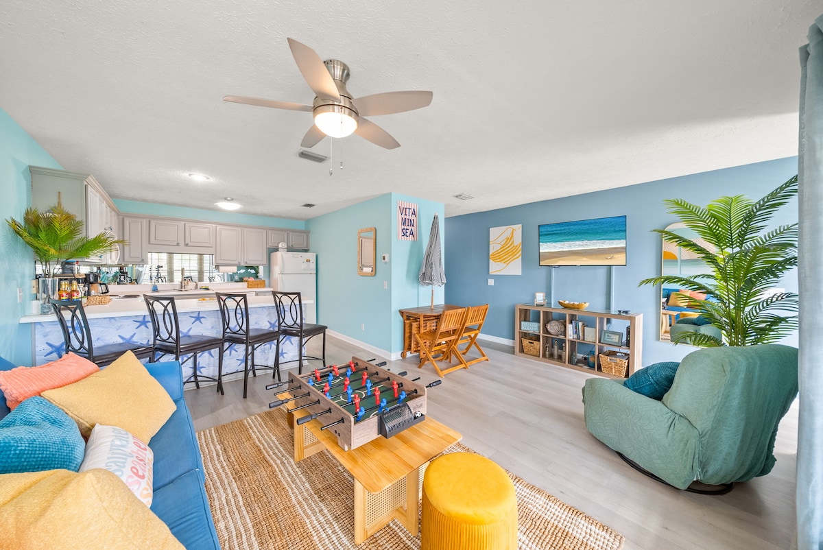Świetna lokalizacja i pięknie urządzone 1 łóżko 1 łazienka na najwyższym piętrze z mnóstwem naturalnego światła. Wyposażone w udogodnienia i udogodnienia, które zapewnią Ci niezapomniany pobyt w PCB, i niecały kilometr od parku molo. * 1 min pieszo do plaży * Ninja Slushi machine * Sprzęt plażowy wliczony w cenę (typowy koszt to 40 $ za wynajem 2 krzeseł/parasola na plaży) * Wózek plażowy (do przenoszenia krzeseł) * Dostęp do 2 basenów na terenie nieruchomości * Mrożony i gorący ekspres do kawy