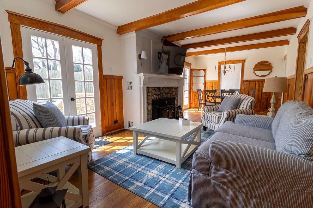 Nasza farma Coleman Road może wyglądać jak uroczy starszy dom z zewnątrz, ale w środku znajdziesz stylowo urządzony, nowoczesny dom, w którym będziesz mógł spędzić czas. Pokoje są wypełnione popołudniowym światłem słonecznym i zostały gustownie urządzone, aby zapewnić spokojny i wygodny wypoczynek. Przestronny salon, dwie sypialnie, pełna łazienka oraz oddzielna kuchnia i jadalnia, przestrzeń oferuje wszystko, czego potrzebujesz w przytulnym i nowoczesnym otoczeniu.
