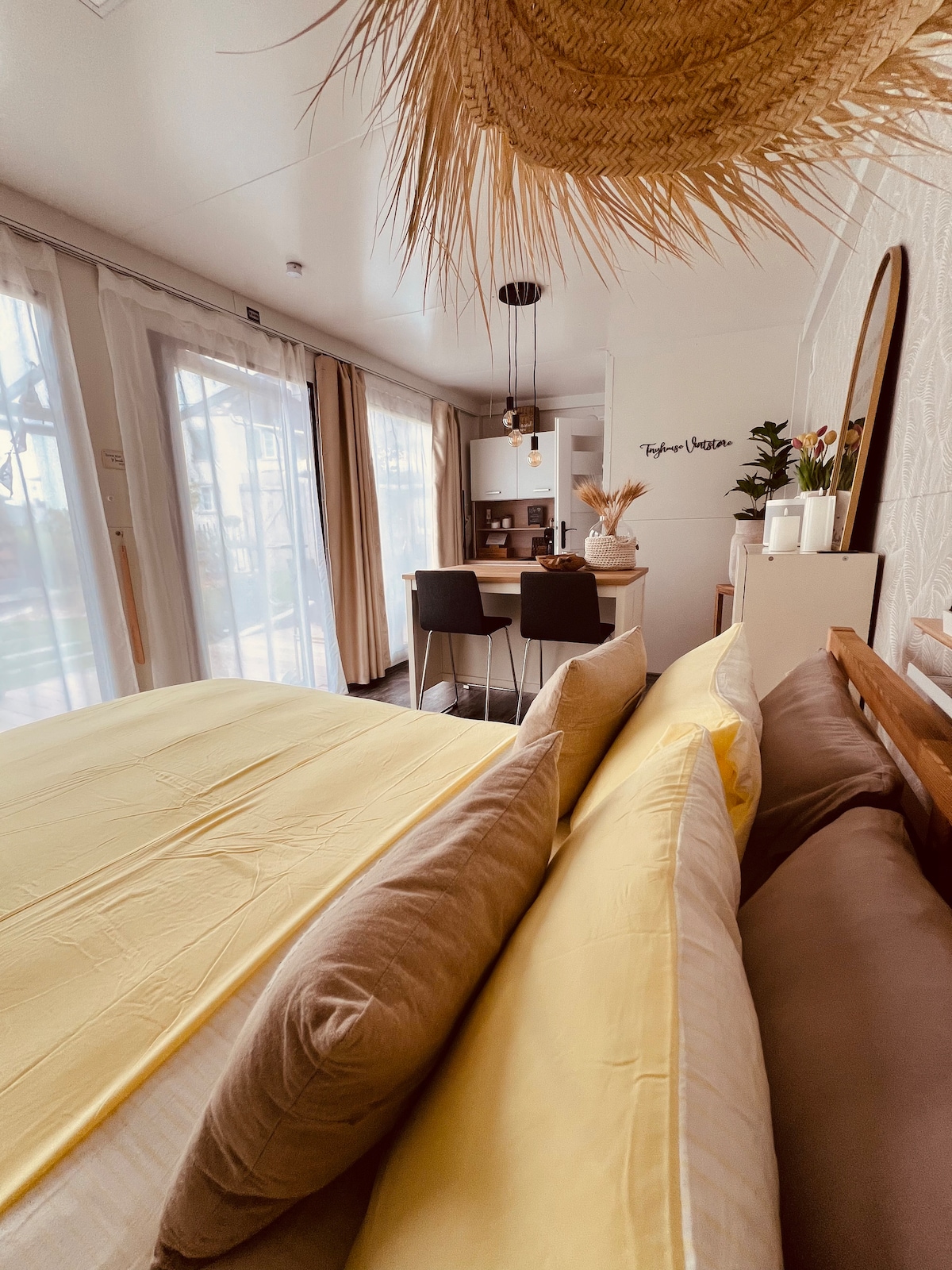Erlebt echte Hyggezeit. Geniesst besondere Augenblicke am knisternden Kamin, während ihr gemeinsam euer Essen zubereitet. Lasst euch von stimmungsvollen Lichtern verzaubern und spürt das warme Hüttenfeeling im Gewächshauswohnzimmer. Die Nacht verbringt ihr im behaglichen, liebevoll eingerichteten Tinyhouse. Ideal für Cosyfans, neugierige Abenteurer-innen und alle die das Besondere lieben. Bitte beachtet, dass das Tinyhouse Ende November bis März im Wintermodus ist (Näheres in der Beschreibung)