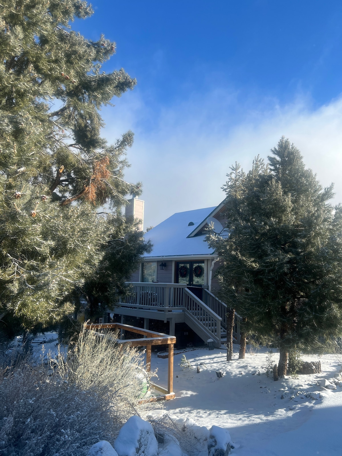 Przestronna, trzypiętrowa klatka A schowana na wzgórzach Pine Mountain Club oferuje duży taras, okna od podłogi do sufitu, wannę z hydromasażem, dwuosobową saunę na podczerwień i cztery łóżka z widokiem na gwiazdy. Miejsce dla 13 osób, przyjazne dla rodzin i zwierząt. Kominek opalany drewnem, bezpłatne drewno opałowe i piec na pelety zapewniają przytulność. Pokój filmowy i gier na dole. Zaledwie pięć minut spacerem do magicznej 3-milowej wędrówki z bełkoczącym potokiem, majestatycznymi sosnami i niekończącą się zabawą na śniegu!