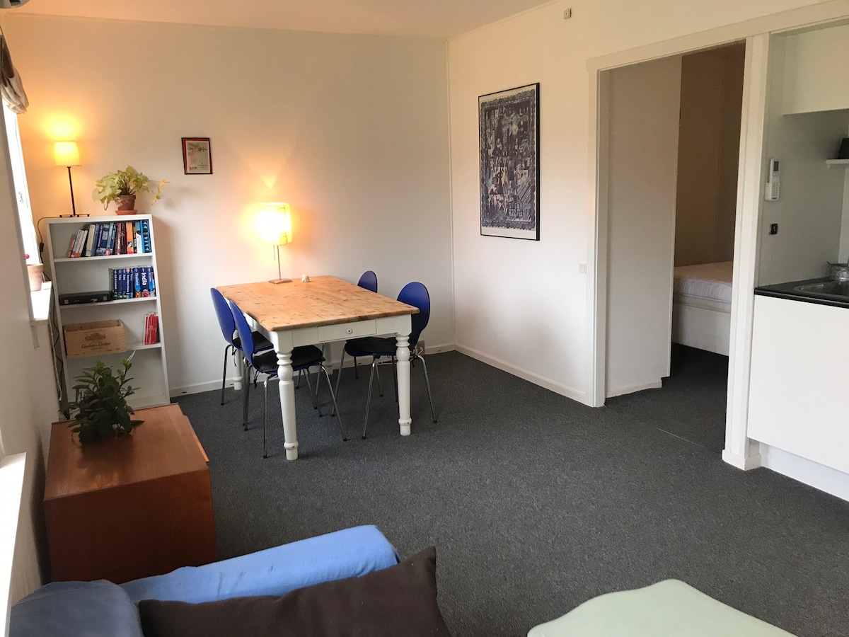 Cute little annex in beautiful surroundings . You have private entrance and your own house with living room, bed room, little kitchenette, toilet and shower. Futhermore the house has a beautiful terrace with furniture to use during spring, summer and autumn. From the living room and terrace you have a stunning view to field ann horses. The house is situated at the same area as our house about 15 meters from our house, but the house is private and there is no view to each others vindows.