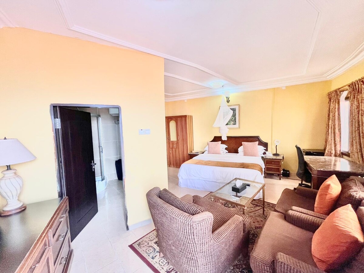 Relax and recharge in our elegant King Room, designed to offer you a spacious and serene retreat. Sink into the plush king-sized bed, dressed with soft linens, and enjoy the calming ambiance created by tasteful décor and gentle lighting.. With round-the-clock security monitoring throughout the hotel. Ideal for solo travelers, couples, or business guests seeking a peaceful haven, the King Room at Times Mansion Hotel promises a stay that feels like home only better.