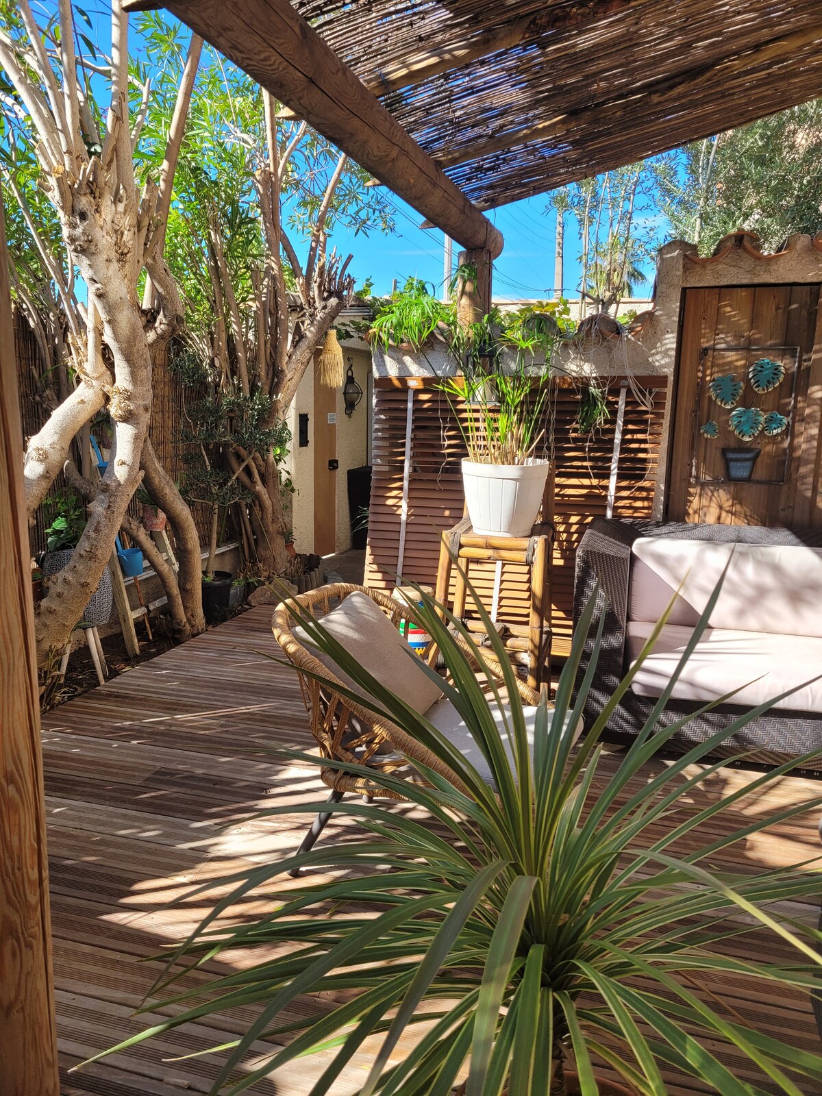 Piękny luksusowy apartament w centrum Cannes, w Le Suquet. Całkowicie odnowiony w stylu zen i indonezyjskim z jacuzzi i dużymi ogrodami. Oferujemy od 3 do 22 listopada, 2 wstępy do spa na pobyt w Cannes Hilton od 3 nocy. Znajduje się 2 minuty spacerem od plaż i 10 minut spacerem od Palais des Festivals. Mieszkanie jest wyposażone w pralko-suszarkę i zmywarkę. Łóżko jest typu queen z bardzo wygodnym materacem. Klimatyzacja dwukierunkowa