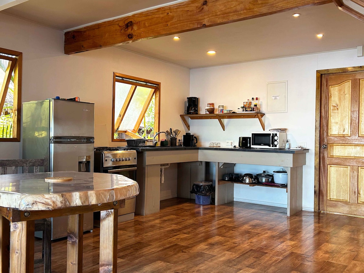 Zamieszkaj w prywatnym domku położonym na wzgórzach z widokiem na lśniące wody Tahaa. Zaniesiony wiatrem niebiański zapach wanilii i kwiatu Tiare sprawi, że poczujesz się częścią spokoju i ciszy tej pięknej wyspy. 🇫🇷 Spokojny, cichy i sielski... położony przy wejściu do najgłębszej zatoki Haamene na wyspie. Venez le découvrir et l 'apprécier! À bientôt