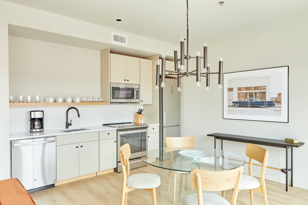 Eleganckie, nowoczesne mieszkanie położone centralnie na historycznej linii tramwajowej i w odległości krótkiego spaceru od Dzielnicy Francuskiej, Superdome, restauracji, sklepów i wielu innych! Zrelaksuj się na tarasie na dachu na 5 piętrze, który oferuje kuchnię na świeżym powietrzu, siłownię i niesamowite widoki na panoramę miasta. To mieszkanie może wygodnie pomieścić 2 osoby, a do dyspozycji jest rozkładany pełnowymiarowy futon. Dla Twojej przyjemności umieściliśmy w Twoim mieszkaniu wszystkie udogodnienia typowe dla domu.