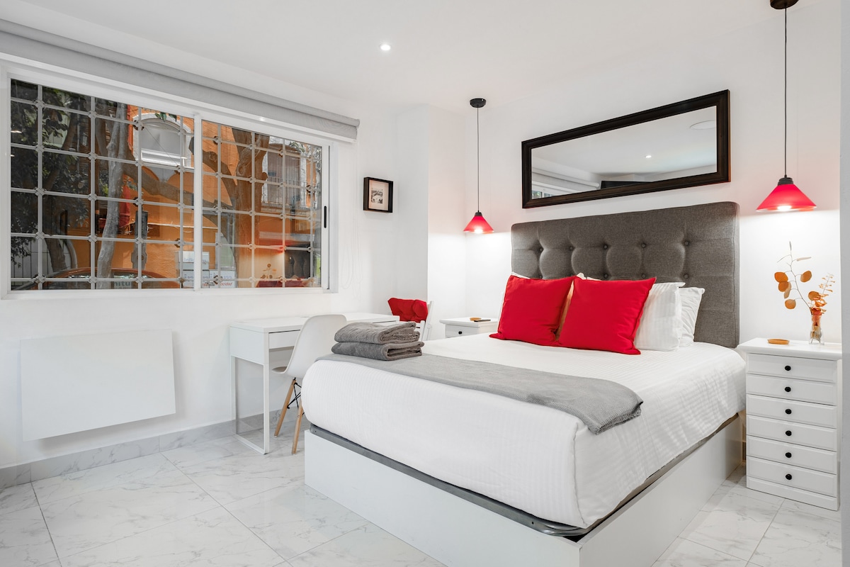 Casa Carmelia celebrates the art that shaped Mexico. "Frida" (#05) Roof-top suite offers a plush King bed, private bathroom, garden terrace, & modern tech for remoting... As passionate and unique as Frida Khalo's world. Steps from the bustling Condesa scene, surrounded by restaurants, bakeries, bars, and lush parks, guests enjoy shared spaces: equipped kitchens, dining area, and rooftop terrace. Relax and soak in the vibrant energy of La Condesa. 🚧 neighbor construction. Earplugs avail.