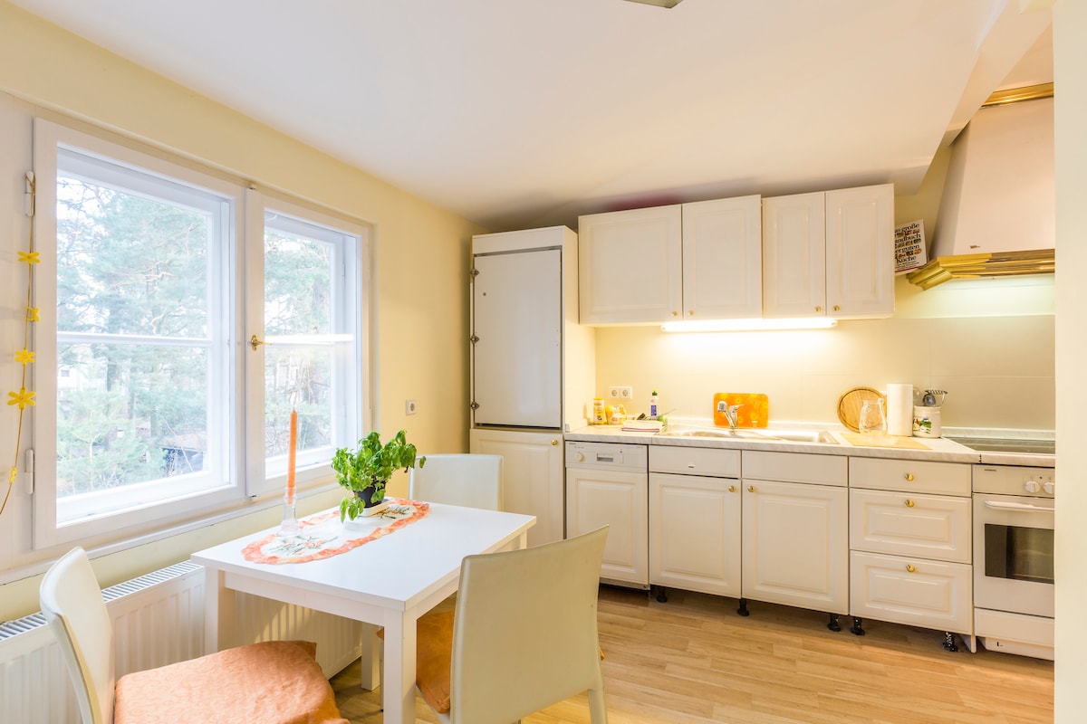 Authorization: 03/Z/AZ/003649-18; INFANTS / Toddlers pay a full price .SEPARAT 80sqm Apartment: 1 Bed/Living-Room, 2 additional Bedrooms, 1 Kitchen, 1 Bath, 1 Hallway, 1 Working-Room, bright, furnished, digital TV, HiFi, fast Internet, Mesh-WLAN, sofa landscape, family table, functional kitchen, dishwasher, garden house with rattan lounge. Na poddaszu 1 Biuro – więcej. Oddzielne wejście/korytarz, parking bezpośrednio przed domem, WALL-Box dla E-KfZ (opłata). Supermarket, lekarze, restauracja w pobliżu
