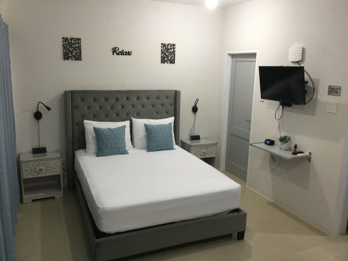 Ciesz się komfortowym i stylowym pobytem w tym w pełni umeblowanym mieszkaniu z jedną sypialnią, położonym w spokojnej dzielnicy mieszkaniowej. Ta nowoczesna przestrzeń, dogodnie zlokalizowana w pobliżu lokalnych udogodnień, oferuje łatwy dostęp do lokalnych atrakcji. Lokalizacja: ★ 17 km od lotniska (26 minut samochodem) ★ 1,0 km od supermarketu w Warrens (10 minut samochodem) ★ 4 km od ambasady USA ★10-15 minut jazdy do popularnych plaż, restauracji i atrakcji turystycznych. Masz BEZPŁATNY prywatny parking