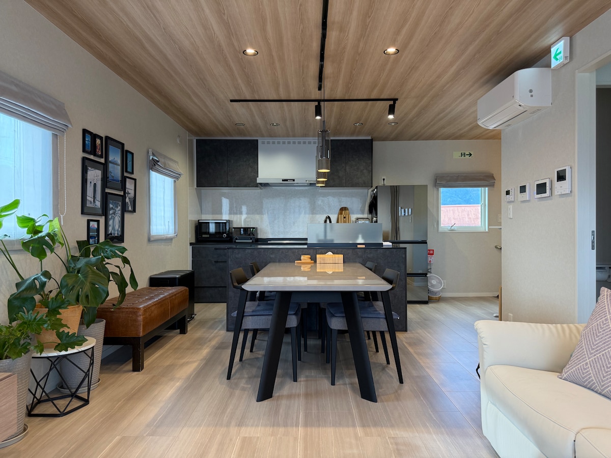 Miire Mt. Fuji Forest Nowo wybudowana, 3-piętrowa prywatna willa została zbudowana w mieście Fujikawaguchiko z widokiem na majestatyczną górę Fudżi. Willa znajduje się w idealnym miejscu, z którego roztacza się widok aż do podnóża góry Fuji, a szczególnie z dużego jacuzzi na 3 piętrze można podziwiać wspaniały widok na górę Fuji. Ponadto, z przestronnego salonu na drugim piętrze można podziwiać widok na górę Fuji, której piękno z pewnością Cię oczaruje. Willa jest wyposażona w trzy łazienki z toaletami, które mogą pomieścić dużą liczbę osób. Willa jest przestronna, a jej powierzchnia całkowita wynosi 136 m². Ponadto, w sypialni na pierwszym piętrze znajdują się wysokiej jakości łóżka marki Simmons. W pokoju znajdują się 4 pojedyncze łóżka i 3 łóżka typu queen, które mogą pomieścić do 10 osób. Jest ona w pełni wyposażona w pralkę i suszarkę, co czyni ją idealną na dłuższy pobyt. Ponadto, obok obiektu znajduje się restauracja z grillowanymi potrawami, a w odległości spaceru znajdują się również inne restauracje i puby. Dogodna lokalizacja, 3 minuty pieszo do sklepu spożywczego, 8 minut pieszo do dużego supermarketu, a stacja benzynowa znajduje się zaledwie 1 minutę jazdy samochodem. Ciesz się wyjątkowym pobytem w prywatnej willi z widokiem na górę Fuji.