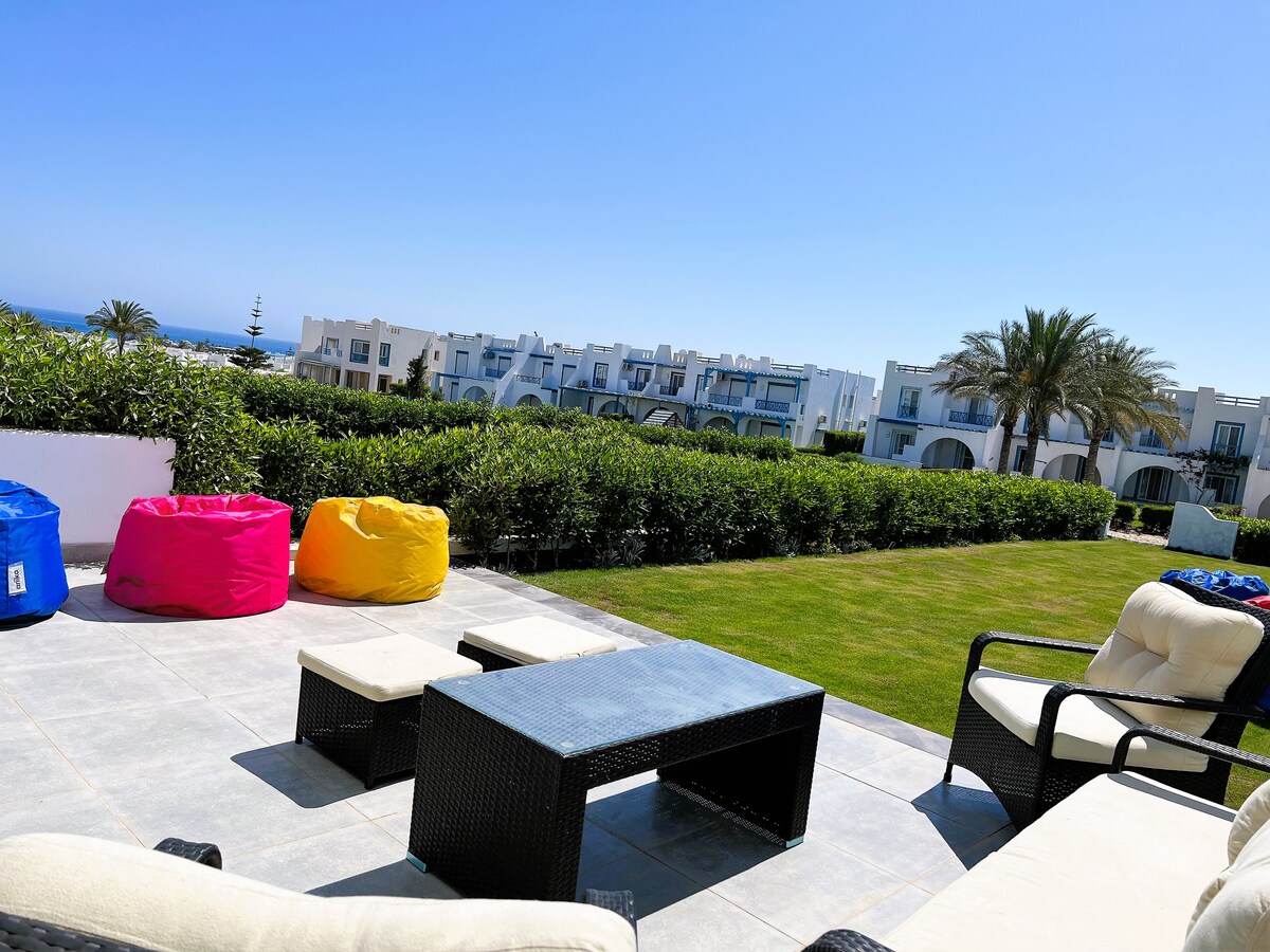 Spacious 4-bedroom twin house with a private garden in the peaceful Mountain View compound. Comfortably fits up to 12 guests (7 beds + 3 sofa beds). Stylish, modern design with open living spaces and a fully equipped kitchen. Enjoy paid access to a private beach for up to 6 adults - just a short drive away. Perfect for families or groups looking for a quiet coastal escape.
