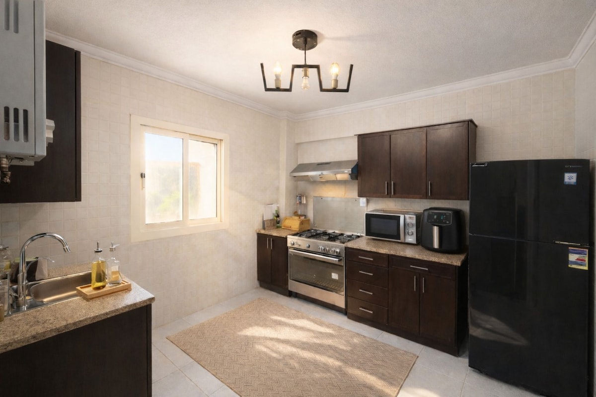 Witaj w swoim spokojnym zakątku w tętniącym życiem sercu Degla Maadi! Ten elegancki apartament położony w doskonałej lokalizacji oferuje spokojną przystań zarówno dla rodzinom, jak i podróżnym. Wkrocz do nowoczesnej elegancji dzięki naszej stylowo urządzonej przestrzeni, oferującej dwie przytulne sypialnie z pluszową pościelą, która zapewni spokojny sen. W pełni wyposażona kuchnia zachęca do kulinarnych przygód, a wygodna część dzienna zaprasza do relaksu po całym dniu zwiedzania tętniących życiem ulic Kairu.