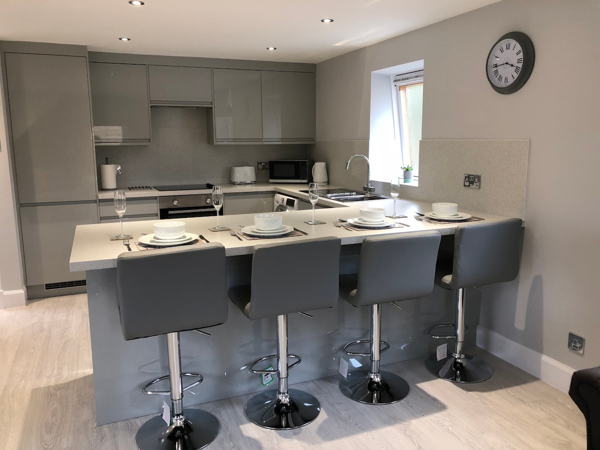 Spire View is located in the heart of the Granite City just off Union St. A two bedroom open plan luxury apartment, spacious and contemporary in design, the property has been artistically decorated and finished to the highest of standards. The accommodation has 2 bedrooms each with king size bed and one with en-suite. The modern kitchen boasts a wine cooler, built in dishwasher and microwave as well as boiling water tap for your convenience. You don't want to miss the opportunity to stay here!