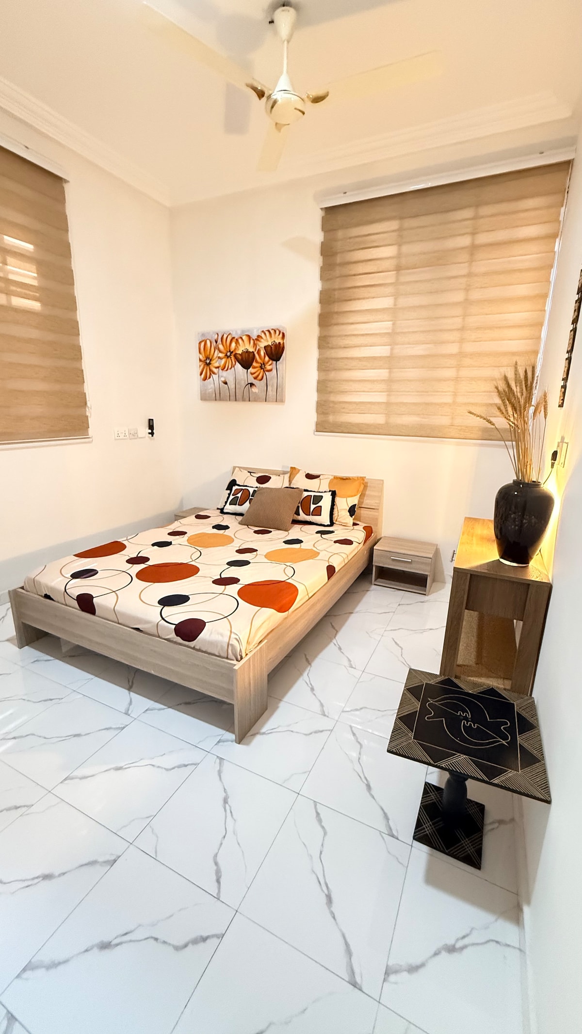 Witamy w ekskluzywnym miejscu na wypoczynek w mieście Akra! Z oszałamiającym widokiem na góry Aburi, zaledwie kilka minut jazdy lub 15 minut spacerem. Mniej niż 12 mil od lotniska, prosto na M4 bez zakrętów. Nasz apartament z dwiema sypialniami oferuje radość i komfort dzięki całodobowej ochronie, całodobowej dostawie prądu i wody, ekskluzywnym udogodnieniom, takim jak basen, taras na dachu, nowoczesna siłownia, pełna kuchnia, Wi-Fi, grill i wiele innych, które sprawią, że Twój pobyt będzie naprawdę niezapomniany.