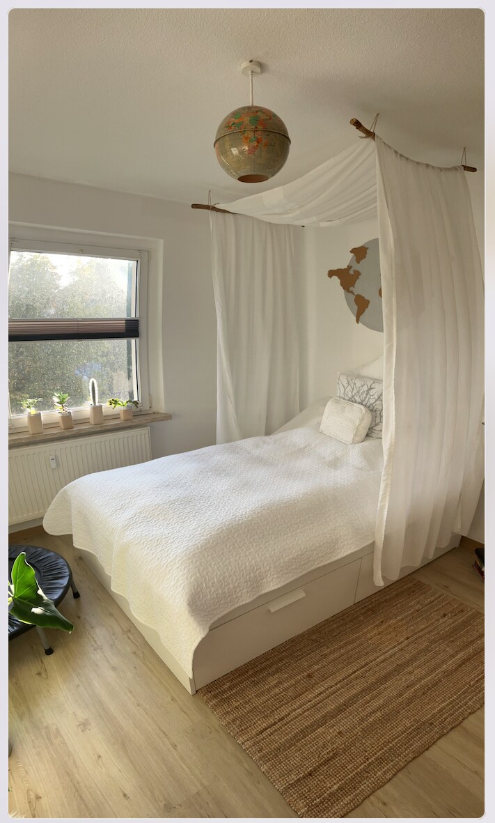 Mały, pięknie odnowiony apartament (ok. 38 m²) w centrum Wismar, a jednocześnie w spokojnej okolicy. Rynek, port, dworzec kolejowy, dworzec autobusowy i duże parkingi znajdują się w odległości kilku minut (3 do 6 minut) spaceru. Zakwaterowanie: ok. 38 m², odpowiednie dla 2 (maks. 3 osoby – do uzgodnienia), Łóżko ma wymiary 200 x 200 cm, kanapa jest rozkładana, Możliwość przechowywania rowerów na dziedzińcu, balkon na podwórko, możliwość krótkotrwałego parkowania przed domem.