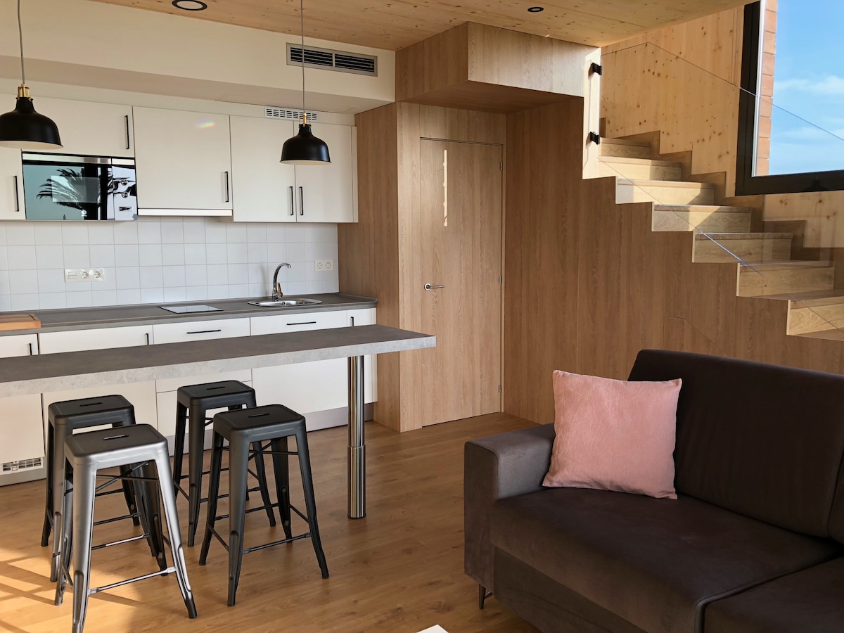 Mamy 4 apartamenty typu duplex w budynku przypominającym domek letniskowy. Każdy apartament dwupoziomowy ma dwie sypialnie, łazienkę na parterze i toaletę na antresoli, a także salon z wyposażoną kuchnią i prywatny taras. Ogród na świeżym powietrzu, basen i grill są wspólne. Położone zaledwie kilka kroków od plaży Rons, bardzo blisko centrum miasta, mają połączenie WiFi i bezpłatny prywatny parking. Zwierzę domowe jest akceptowane, ale w częściach wspólnych musi być zawsze pod opieką.