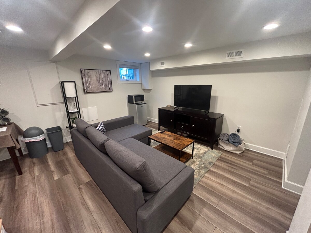 Enjoy easy access to Gallaudet University, H Street corridor, Capitol Hill, and Union Market from this perfectly located english basement. Our guest suite is equipped for your visit to Washington, DC. Access to the unit is through a private basement entrance in the rear of the home, into the bedroom (1 queen). Continue to the living area with a pull out couch (full bed). PLEASE NOTE: We provide a mini fridge, microwave, and coffee fixings, but this basement unit does NOT offer a full kitchen.