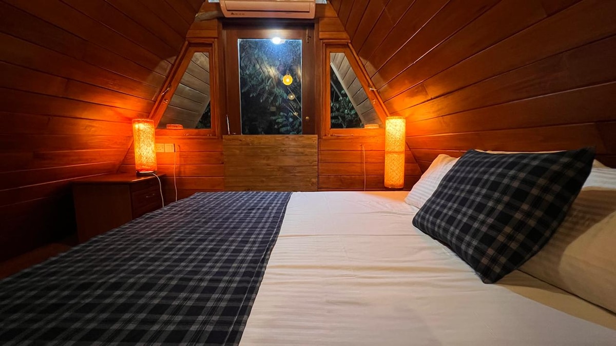 Tucked away in peaceful Goviyapana, Ahangama, this cozy A-frame cabin is perfect for a romantic escape. Just 5 minutes from the southern coast and Unawatuna Beach, it features an attached bathroom, queen canopy bed, and a tranquil mezzanine space. Enjoy lagoon views, lush greenery, and the charm of peacocks roaming the garden. Ideal for honeymoons or nature-filled getaways.