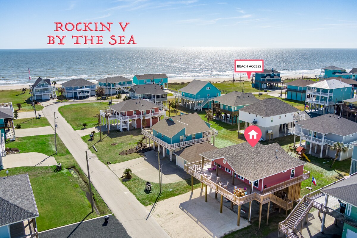 Ciesz się falami oceanicznymi i twórz wspomnienia na zawsze w naszym morskim domu. Wyposażone w 3 sypialnie, które mogą pomieścić 12 i 2 łazienki. Niezależnie od tego, czy chłoniesz kilka promieni na przestronnym górnym pokładzie, czy grasz w gry na świeżym powietrzu i delektujesz się napojami w naszym Tiki Bar, na pewno będziesz się świetnie bawić w Rockin V by the Sea. Dzięki krótkiemu spacerowi lub przejażdżce na plażę, łatwemu dostępowi do lokalnych hotspotów lub przejażdżce promem do Galveston, ciesz się spokojną okolicą Sandy Shores jako swoim domem z dala od domu.
