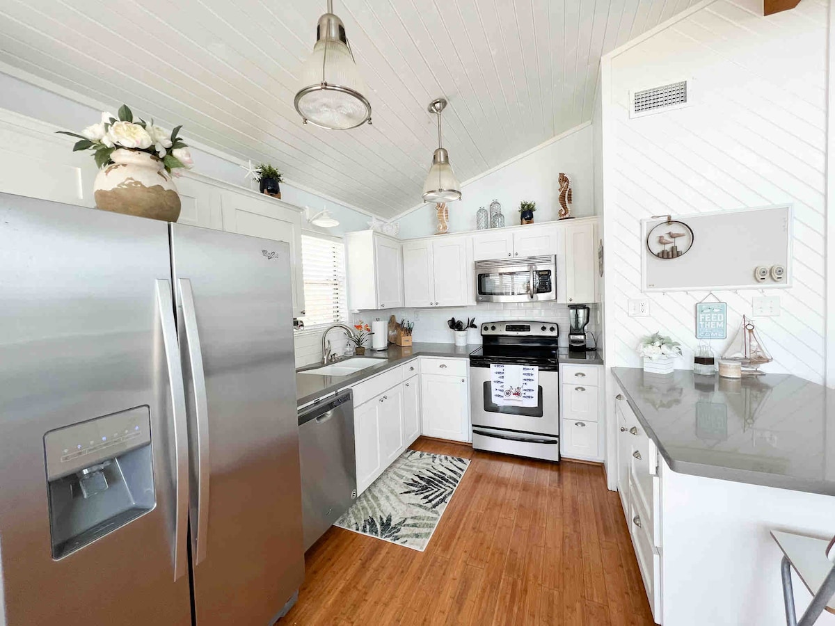 ZATRZYMAJ SIĘ TUTAJ!! Ciesz się tym pięknym domem przy plaży, gdzie możesz podziwiać poranny wschód słońca nad plażą Poquito, popijając kawę. Nie tylko to, ale zobacz zachody słońca nad zatoką Clear Lake bezpośrednio z Twojego podwórka z oszałamiającym, architektonicznym projektem. To stylowy dom w pobliżu Kemah Boardwalk. Przygoda jest nieskończona, wędkowanie, łowienie krabów i kajakarstwo, w odległości spaceru od wielu restauracji. Centrum kosmiczne NASA, targi owoców morza znajdują się zaledwie kilka mil stąd. W pełni sprzątane i dezynfekowane po każdym pobycie.