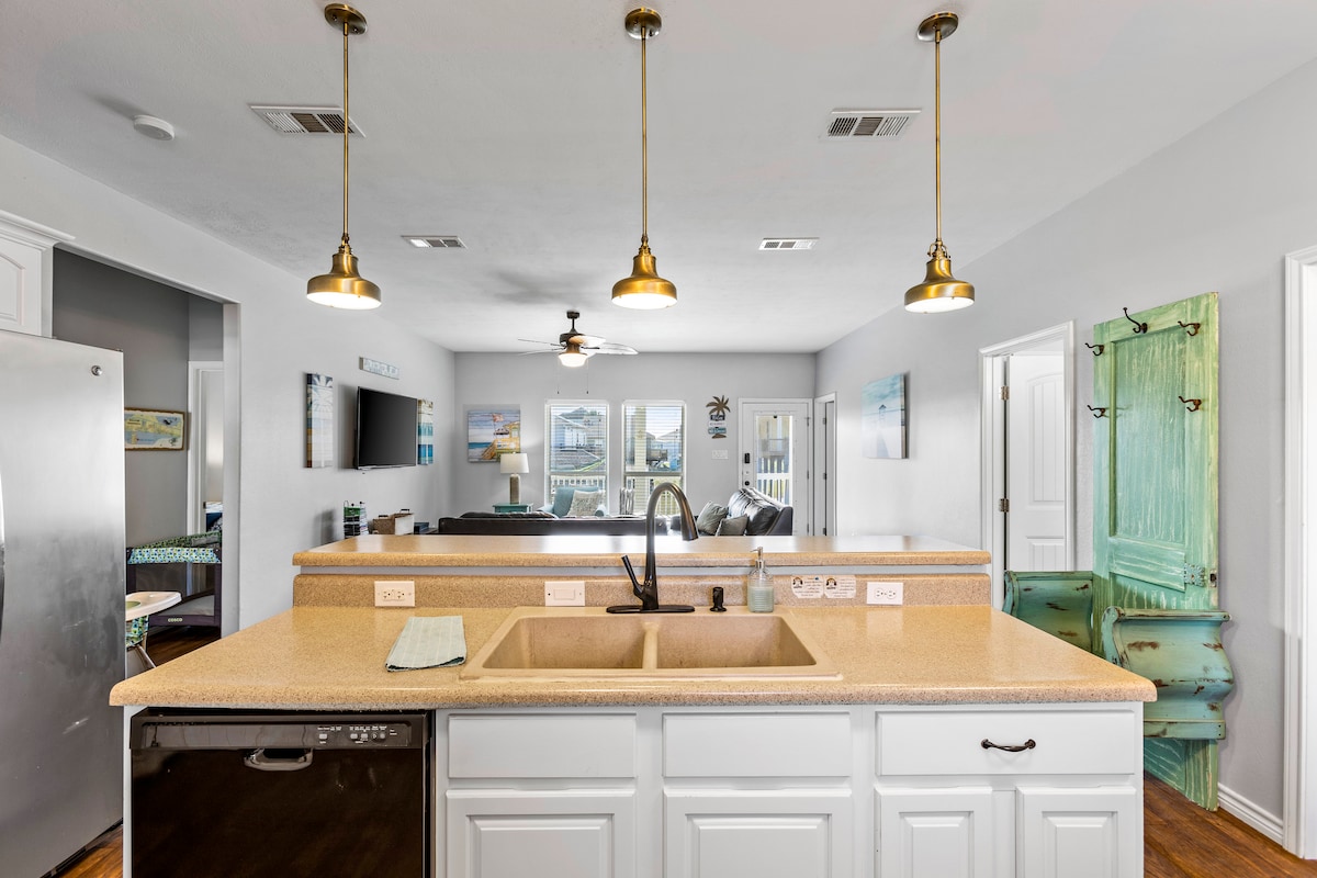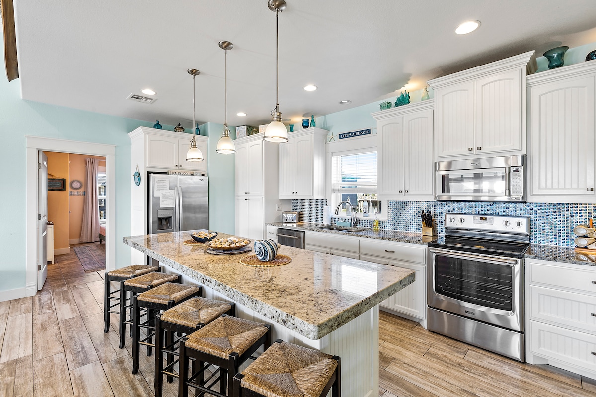 Nie szukaj dalej, ten dom jest IDEALNY na kolejne rodzinne wakacje! To profesjonalnie urządzone miejsce wypoczynku z wieloma udogodnieniami, w tym wanną z hydromasażem, grami na świeżym powietrzu, łóżkami typu king, 2 automatami do gier i specjalną maszyną do lodu. Zrelaksuj się, podziwiając widoki na ocean, lub zrelaksuj się na dole w wannie z hydromasażem, prysznicu na świeżym powietrzu, stacji do czyszczenia ryb i hamakach.