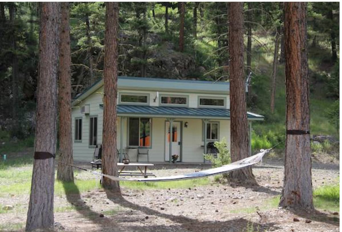 Cozy and comfortable Studio w/ private entrance & 500' river front in Carlton, WA. Queen bed, WIFI, Dish Network TV, Toaster, Microwave, Coffee Pot, Keurig, Full size Refrigerator/Freezer. Sorry, no cooking inside, there's a Blackstone Propane Griddle on the deck with cookware. Walk in shower with glass doors. Private deck with seating, propane fire pit (usable winter only), hot tub. Enjoy the yard, hammock, pick fresh fruit (in season), follow the path to the river and fish (in season)