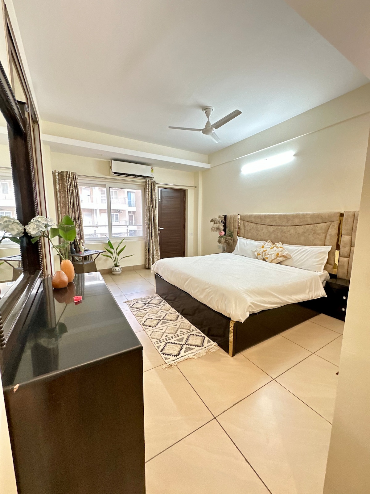 Relax with your family at our Peaceful, Luxurious and Newly Renovated 2bhk with stylish interiors. Featured by @elledecorindia and @homepublicationme thanks to @idesign_spaces. The apartment is situated in a peaceful residential complex, right on Main Badrinath Highway and next to Janki Setu Ghat. There is 24hrs security and power backup within the premises.