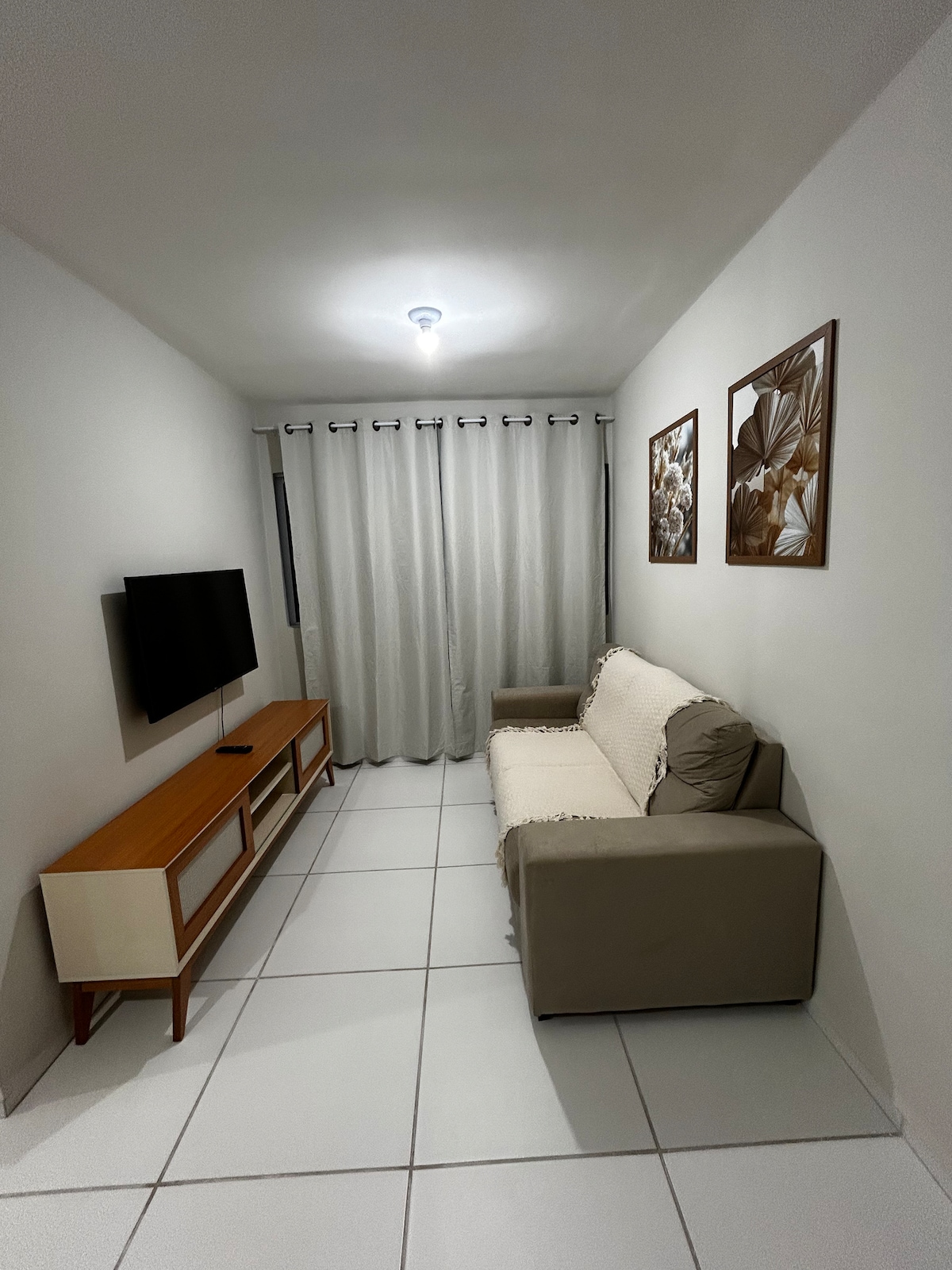 Apartament z 2 sypialniami, 1 pokojem z łazienką, pojedynczym salonem z 50-calowym telewizorem, sofą, stołem jadalnym, kuchnią z płytą kuchenną i lodówką, pralnią z pralką, prysznicami elektrycznymi w obu łazienkach, apartament w zamkniętym osiedlu z windą i miejscem parkingowym, dla 1 pary z dzieckiem, ma tylko jedno podwójne łóżko i jedno pojedyncze łóżko, położony w dzielnicy São José, w pobliżu placu wydarzeń