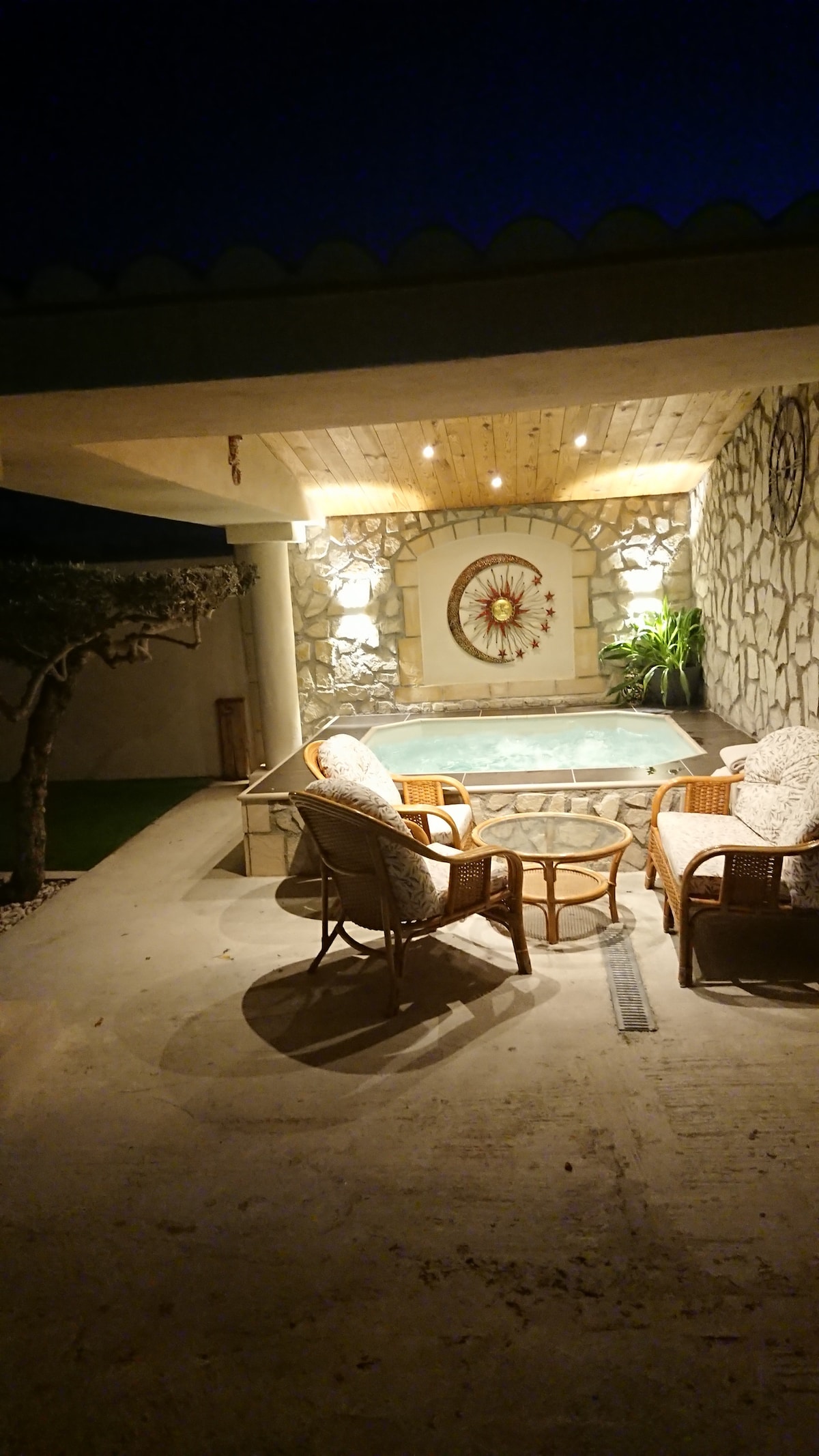 Suite de caractère située entre Nîmes et Montpellier et à 30 min des plages. Complètement dédiée à l’évasion, au repos et à la relaxation. Vous y trouverez tout le confort, un lit baldaquin queen, un vrai Jacuzzi américain 3 places, une cheminée électrique, une Tv 55', un canapé-lit, wifi et Netflix. Dans la salle de bain, vous trouverez une double vasque ainsi qu une douche. Dans la cuisine, tout le nécessaire pour réchauffer vos plats vous attend. Inclus place privée.