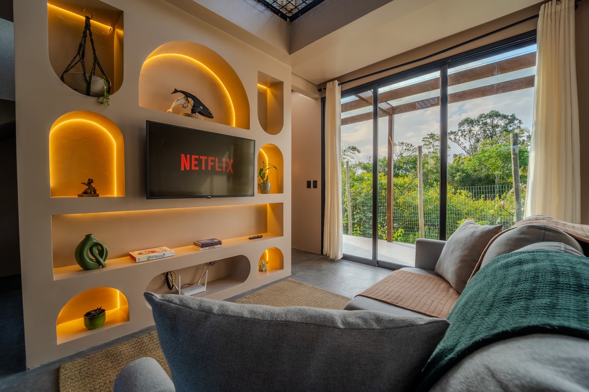 The Despertar Suite, located in Praia do Rosa - Imbituba/SC. Przytulna i przyjemna przestrzeń dla par szukających wygody i wyjątkowego doświadczenia z pięknym widokiem na morze i pysznym śniadaniem. Nasza przestrzeń ma strukturę otoczoną przyrodą, z wystrojem plażowym, całkowicie odpowiadającą temu regionowi. Do dyspozycji gości jest również piękne jacuzzi z wodą i luksusowy apartament. Odległość do Praia do Rosa: 1,5 km (10 min);