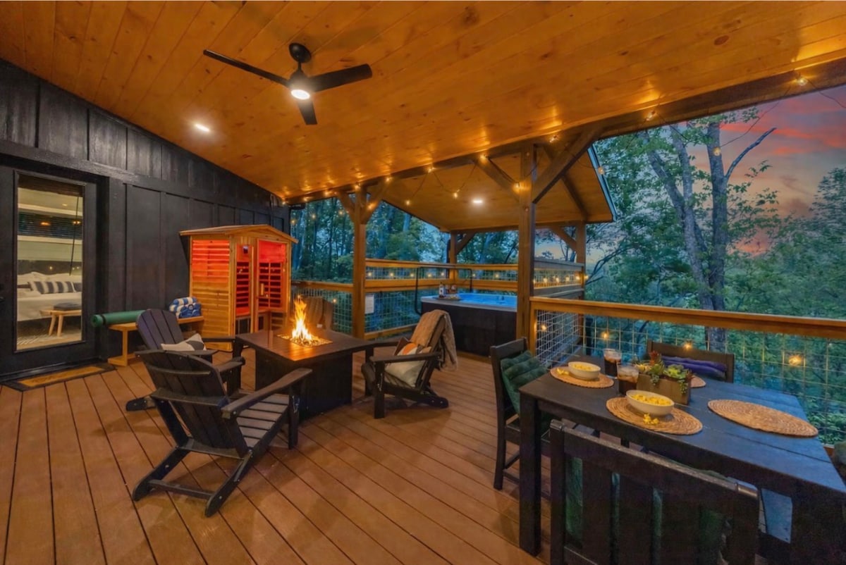 Luxury Cabin Roof Top with View, Sauna & Hot Tub!
