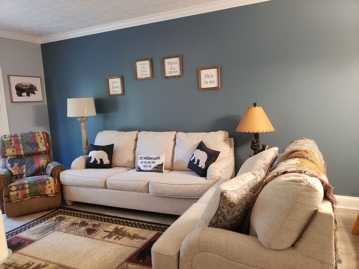 Idealny wypad w Smoky Mountain. Prawdziwy domek z bali z zapierającymi dech w piersiach widokami na góry po obu stronach domu. 2 łóżka typu king, 2 łóżka typu queen, podwójne składane krzesło, rozkładana kanapa typu queen i 2 główne łazienki mogą pomieścić do 9 gości. Obejmuje wszystkie udogodnienia ośrodka: basen (sezonowy), pawilon na świeżym powietrzu z kominkiem, centrum fitness, saunę, jacuzzi i korzystanie z budynku klubowego. Bliskość Parku Narodowego Smoky Mountain i niekończących się szlaków. * Basen czynny od Dnia Pamięci do Dnia Pracy