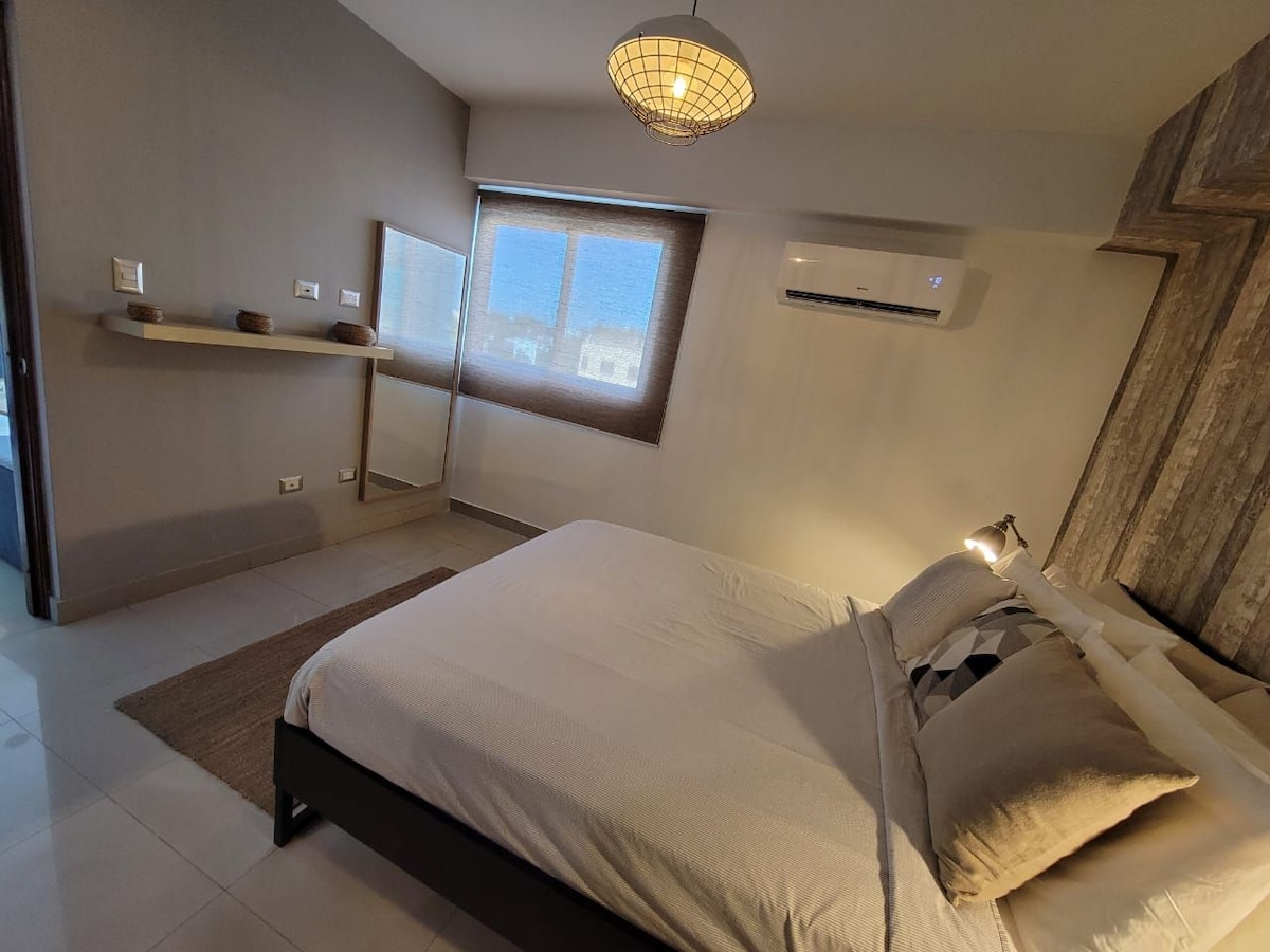 BRAND NEW LUXURY APART. in Downtown Bella Vista. 1 QUEEN BED, 1 SOFA BED. 2 FULL BATHS. 2 TV’s, POOL & LOUNGE AREA. GYM. PRIVATE PARKING. . DOOR MAN 24/7. Smart Lock Entry ✅ Laundry in Unit, Wifi, Cable & NETFLIX included, also Coffee & Bathroom Soap ✅ Building name: Tree Tower III. Close to Shopping Malls, Restaurants, Supermarkets, Movie Theaters. One of the best and most safe areas of beautiful Santo Domingo. 30 min Drive to Airport Las Americas. 20 Min drive to the beautiful Colonial Zone.