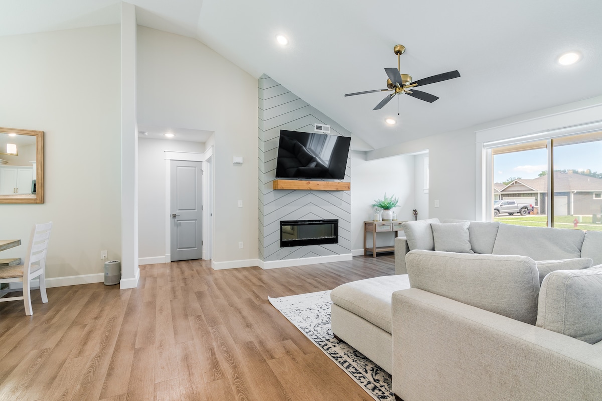 Nowo wyremontowany dom z 4 sypialniami i 2 łazienkami położony dwie przecznice od boisk baseballowych i piłkarskich KSU. Mniej niż 10 minut spacerem do Bramlage i Bill Snyder Family Stadium. Dwa oddzielne pokoje dzienne, każdy z własnym telewizorem Smart TV. Apartament główny z prywatną łazienką i telewizorem Smart TV. Wszystkie nowe meble, materace, pościel, ręczniki itp. Ciesz się kawą z ekspresu Keurig w barze kawowym. Zamknięty ogród zimowy z barem i dodatkowymi miejscami siedzącymi. Parking na ulicy dla dwóch pojazdów.