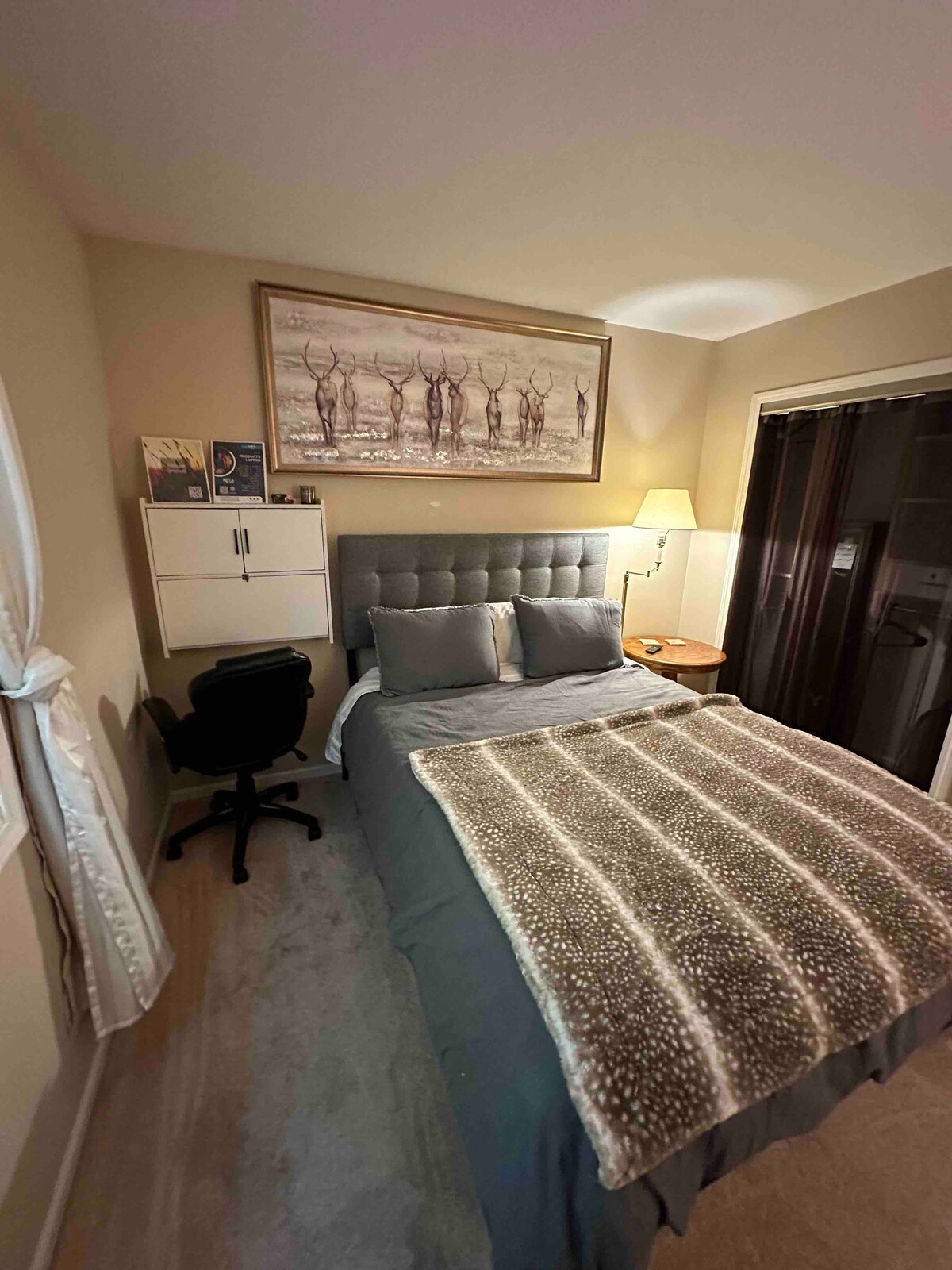 Zrelaksuj się w przytulnym pokoju Palomino – idealnym na krótkie pobyty, wyjazdy służbowe i weekendowe wypady. Korzystaj z pełnego dostępu do pralni na piętrze, kuchni, jacuzzi, siłowni i bezpłatnego parkingu – rzadkich dodatków w South Russell. Kuchnia jest współdzielona tylko wtedy, gdy drugi pokój gościnny jest zarezerwowany. Na tym piętrze znajduje się jeszcze jeden pokój gościnny, ale każdy pokój oferuje prywatność i komfort. Planujesz dłuższy pobyt? Napisz do nas – często możemy zarezerwować dla Ciebie termin na 24 godziny.
