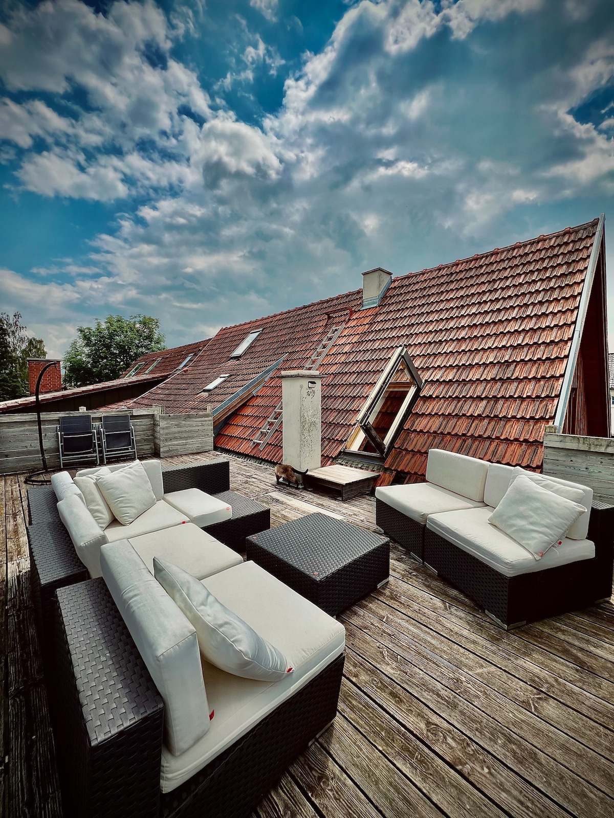 Mieszkanie dwupoziomowe z 2 balkonami (słońce w południe i wieczorem) i oddzielnym wejściem zaprasza do odkrycia Ammersee: w 12 minut można przejść się przez pola (widok na góry) do kąpieliska Stegen z przystanią, restauracjami i ogródkiem piwnym z wieczornym słońcem! Lokalizacja jest idealna do jazdy na rowerze i pływania również w jeziorach Wörth i Pilsen. Do centrum można dotrzeć pieszo w 6 minut. Do Monachium można dotrzeć w ok. 25 min (35 km), Neuschwanstein i Zugspitze w ok. 90 min.