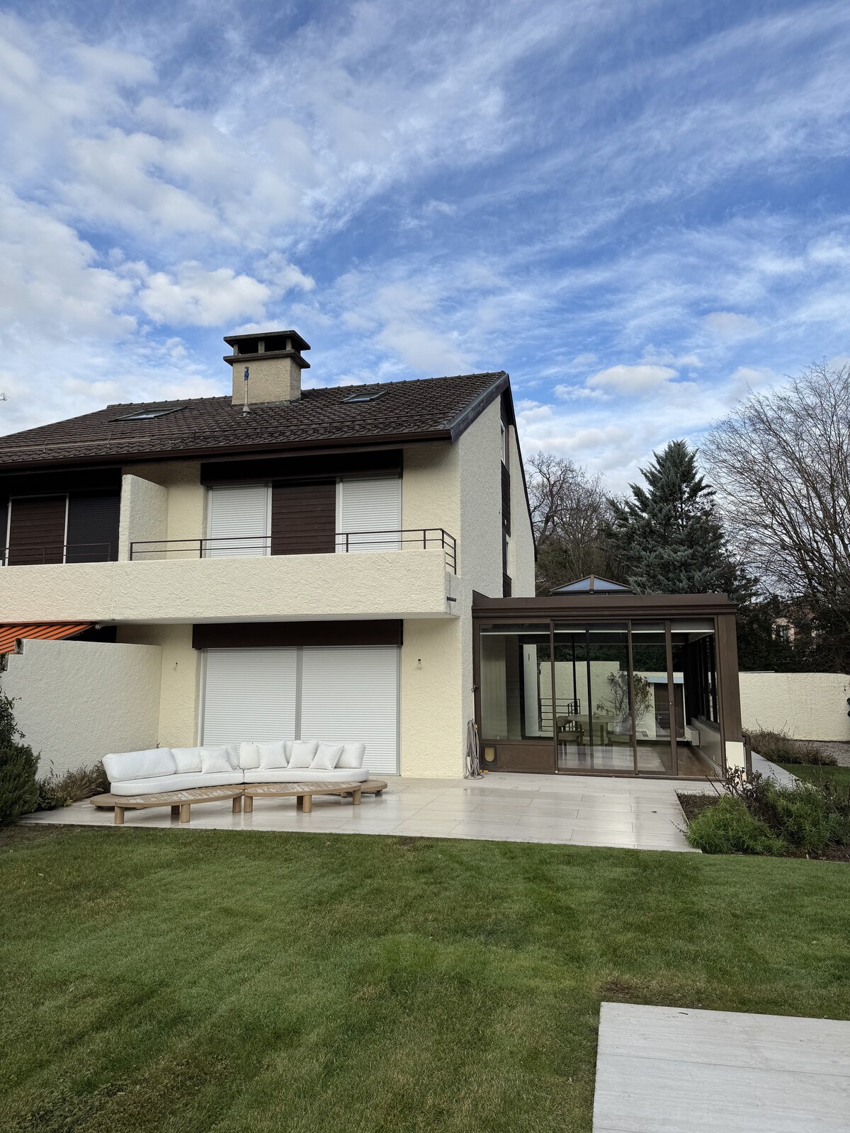 Urocza, wolna od dymu tytoniowego willa rodzinna, 10 minut jazdy samochodem od jeziora i centrum Genewy oraz 5 minut spacerem od tramwaju, który w niecałe 15 minut zawiezie Cię do serca Genewy. Posiada dwa miejsca parkingowe. Ładny mały ogródek z tarasem, jadalnią i grillem, a także zabawki dla dzieci. Na górze znajdują się trzy sypialnie z pięknym umeblowanym tarasem i czwarta sypialnia w piwnicy, trzy łazienki i część biurowa. Idealne dla rodzin. Dzielnica mieszkalna.
